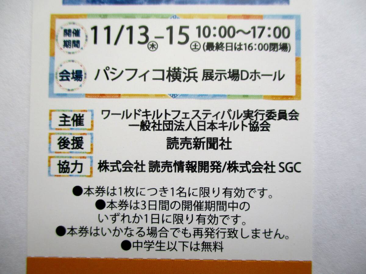 ワールドキルトフェスティバル 2025のご招待券6枚あります