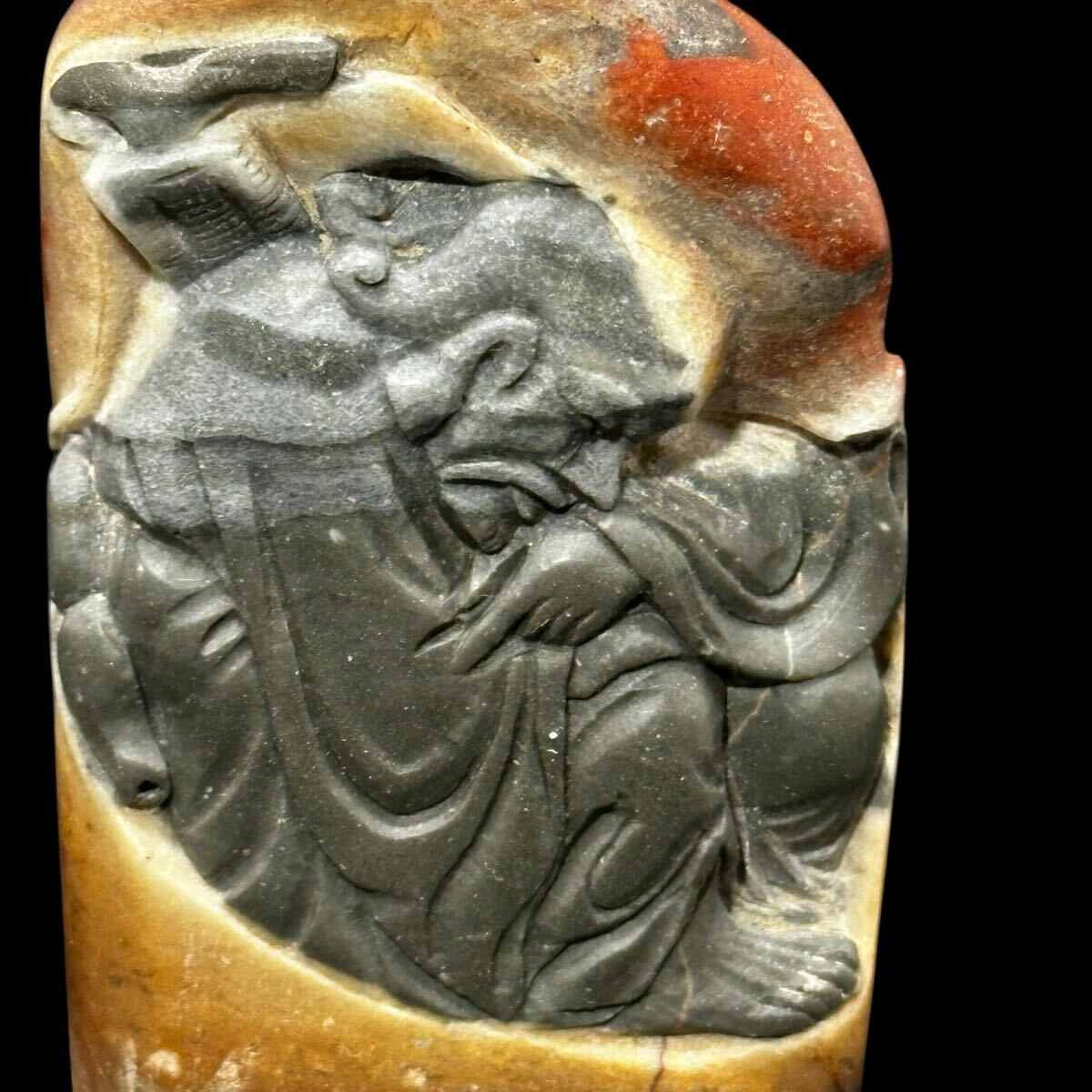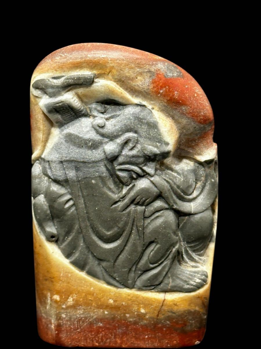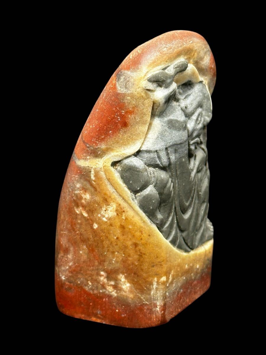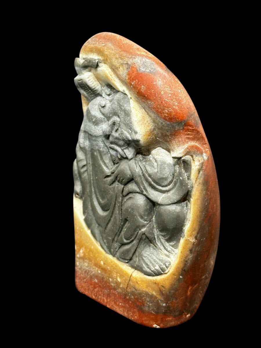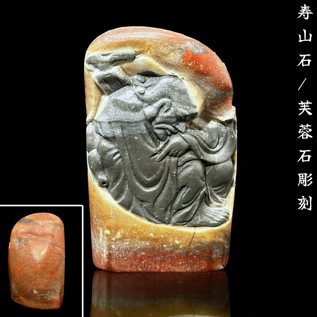 【商品の説明】中国 寿山石 芙蓉石彫刻 仙人翁人物図 裸漢図 緻密彫刻 岩に籠る老人 置物 中国古美術 時代物 印章 印材 骨董品
