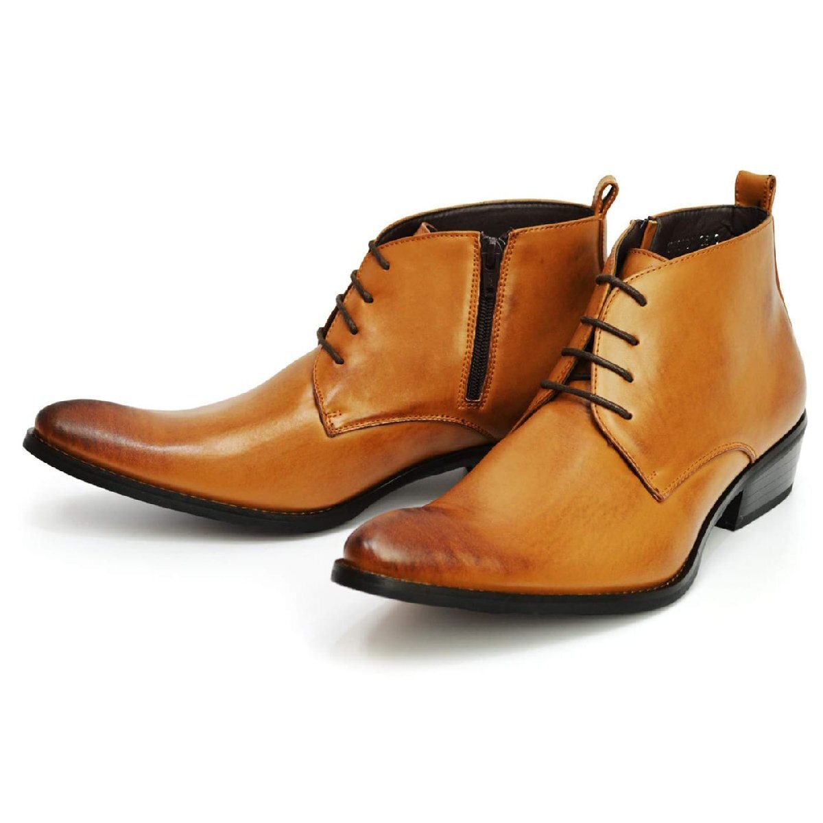 新品■26.5cm ビジネスブーツ フォーマル レースアップ 4.5cm ヒールアップ ポインテッドトゥ メンズ ショートブーツ カジュアル 男 靴