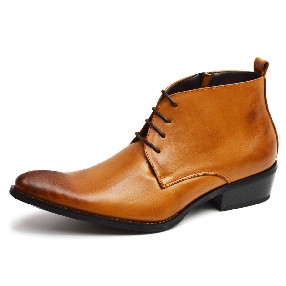 ビジネスブーツ フォーマル レースアップ 4.5cm ヒールアップ ポインテッドトゥ メンズ ショートブーツ 男 靴 ze116456