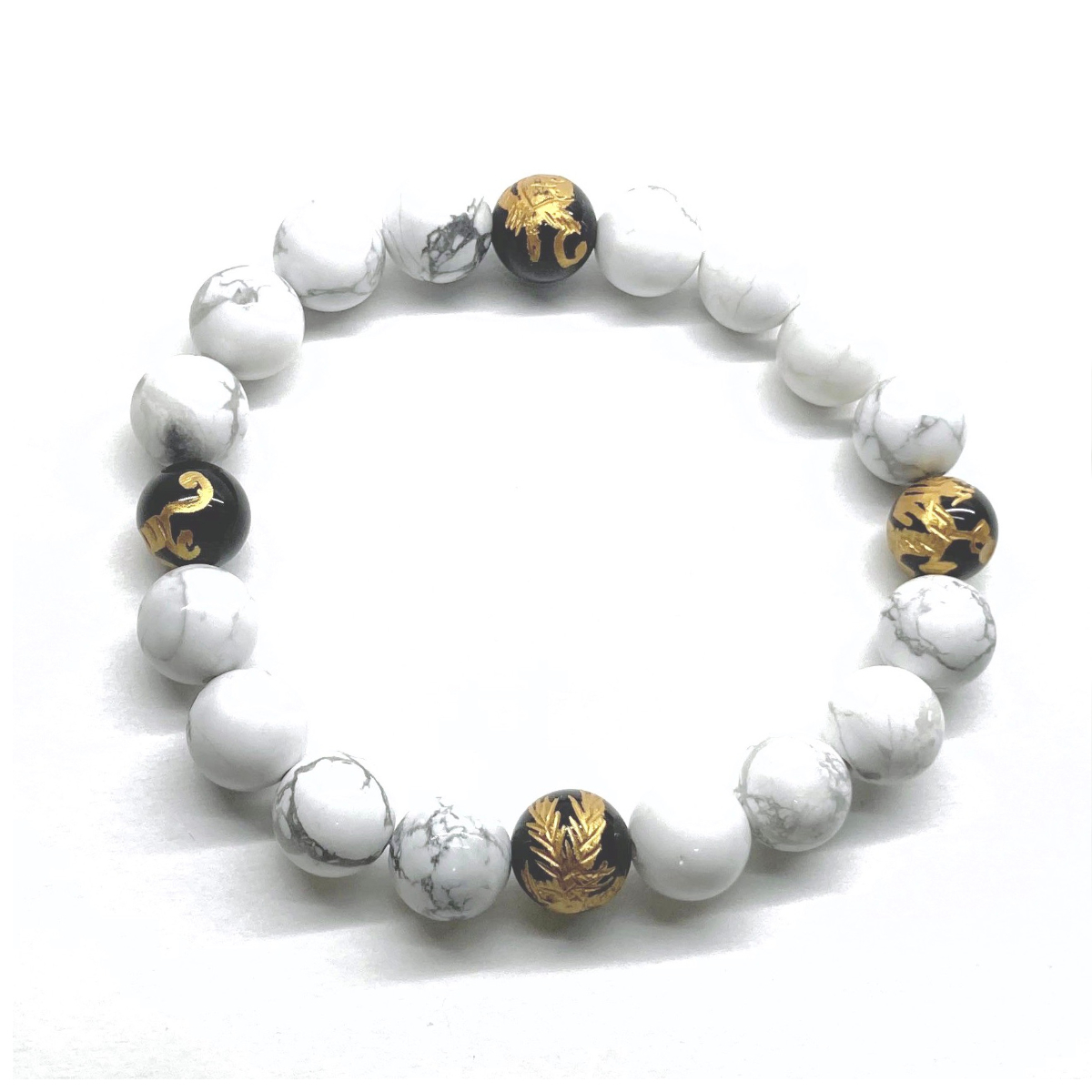 10mm 四神獣金彫オニキス×ハウライト パワーストーン ブレスレット天然石 運気上昇 開運 金運 恋愛運 青龍 白虎 玄武 朱雀 ☆