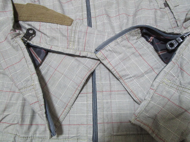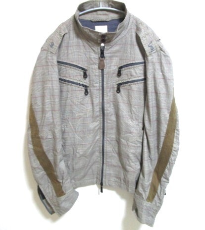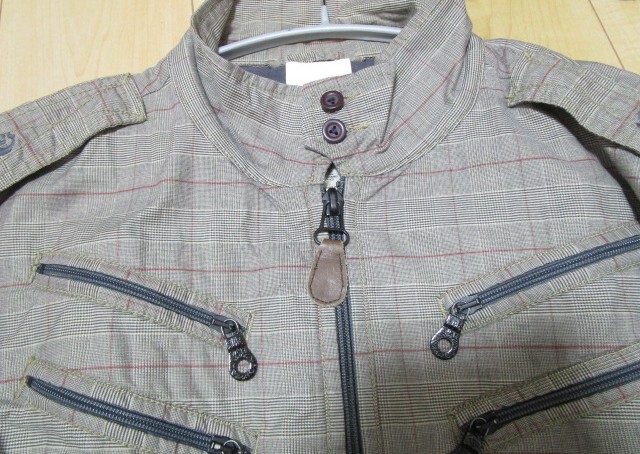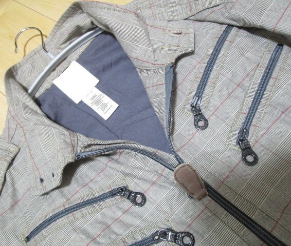 ★商品説明★ | ミリタリーやライダーズのようなエポレット、胸ジップ、袖ジップのディテールとグレンチェックに襟はスイングトップのようにスタンドできるクラシカルな要素をドッキングさせたデザインアイテム◎袖ラインあり☆ディーゼルのロゴパッチや刺繍などところどころにあり♪裏地あり、内ポケあり☆フロントはダブルジップ◎ストレッチあり☆表記サイズはXL、平置き、肩幅約50cm、身幅脇下約58cm、着丈(背面、襟下から)約67㎝です。(素人寸)。 USEDですのでぶぶんでうすよごれ程度はございますが、古着としてはこれからのお品だと思います。 |