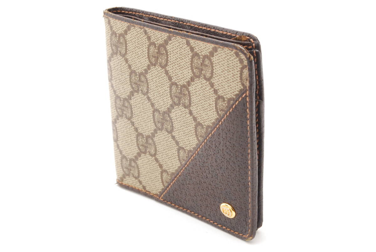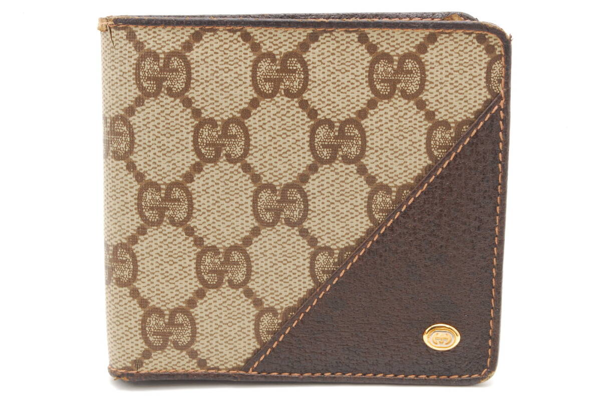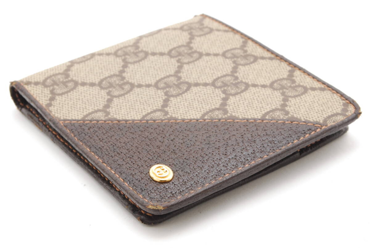 1円【極美品】GUCCI グッチ オールドグッチ ヴィンテージ GG柄 ショルダーバッグ 二つ折り 財布 PVC レザー ブラウン A0685