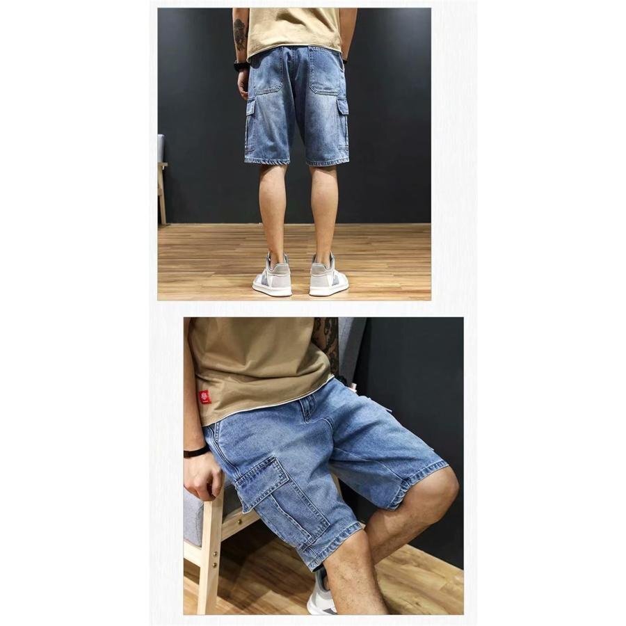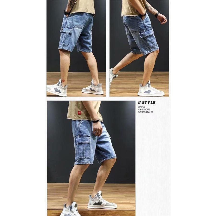夏服 カジュアル デニムパンツ ハーフパンツ メンズ 薄め 体型カバー 旅行 砂浜 通気性 ゆったり ブルー 3XL
