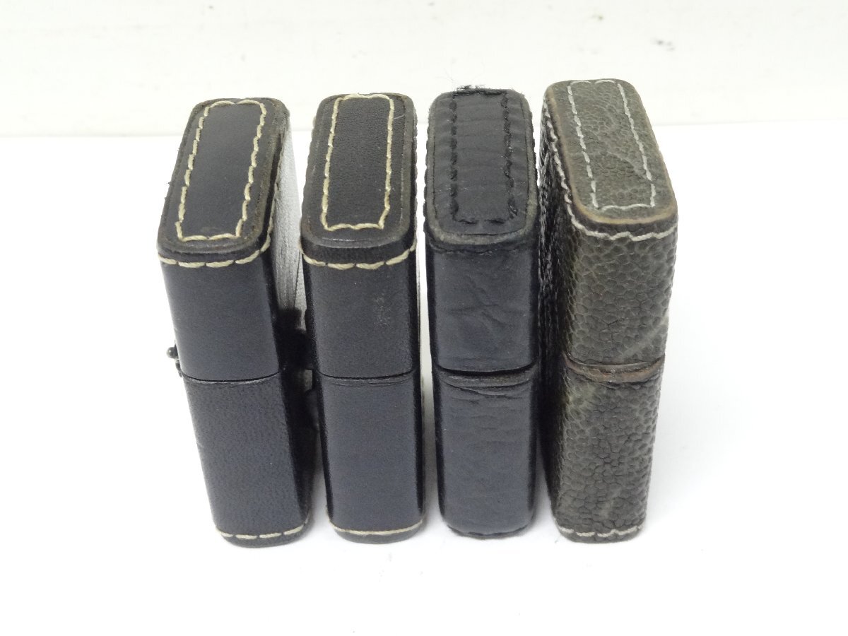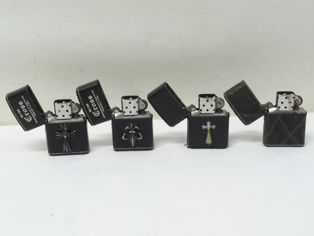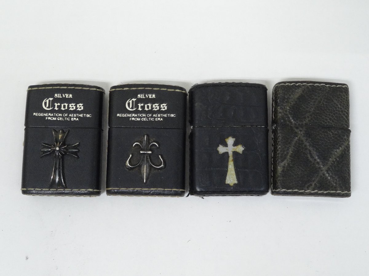 ユ■/Zこ9719 Zippo ジッポ 革張り 4個セット / 着火未確認 ジャンク 保証無 // SILVER Cross メタル貼り