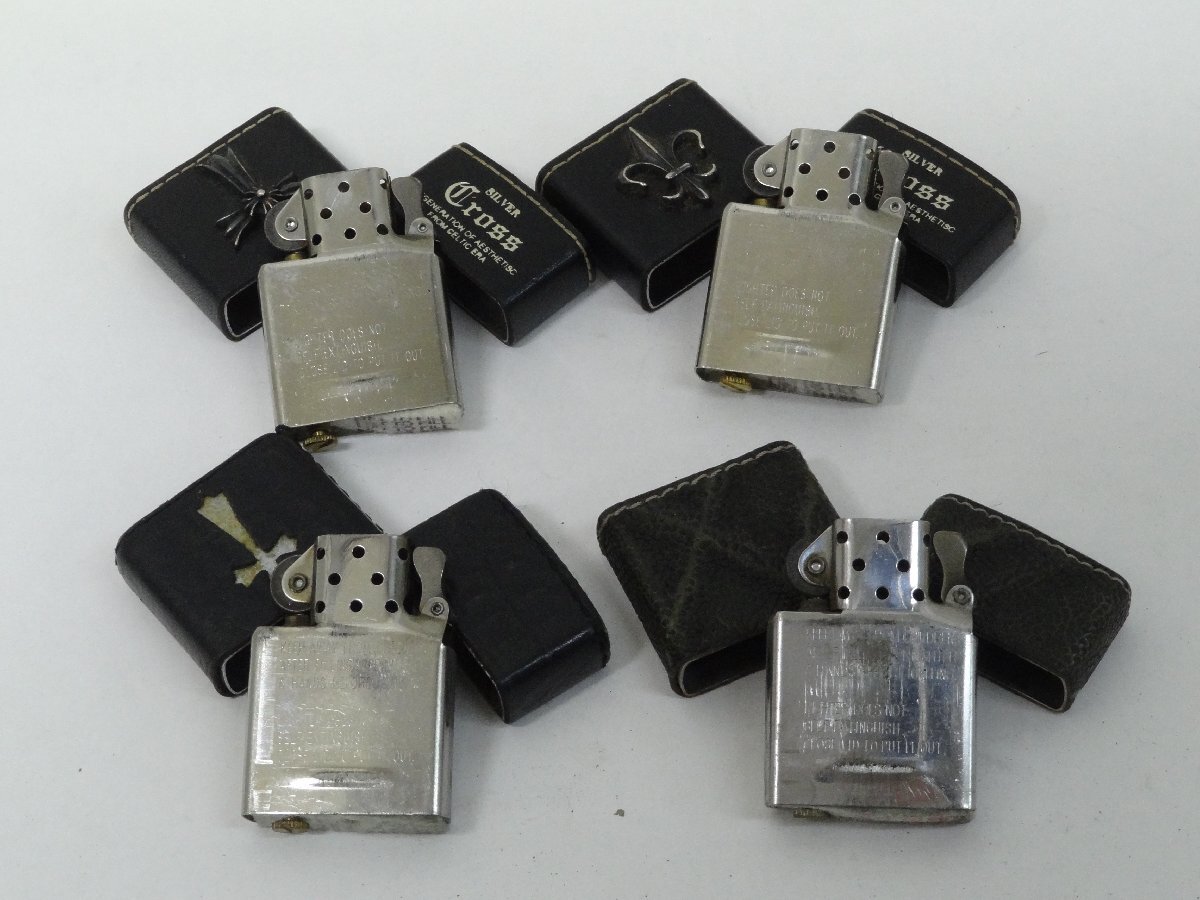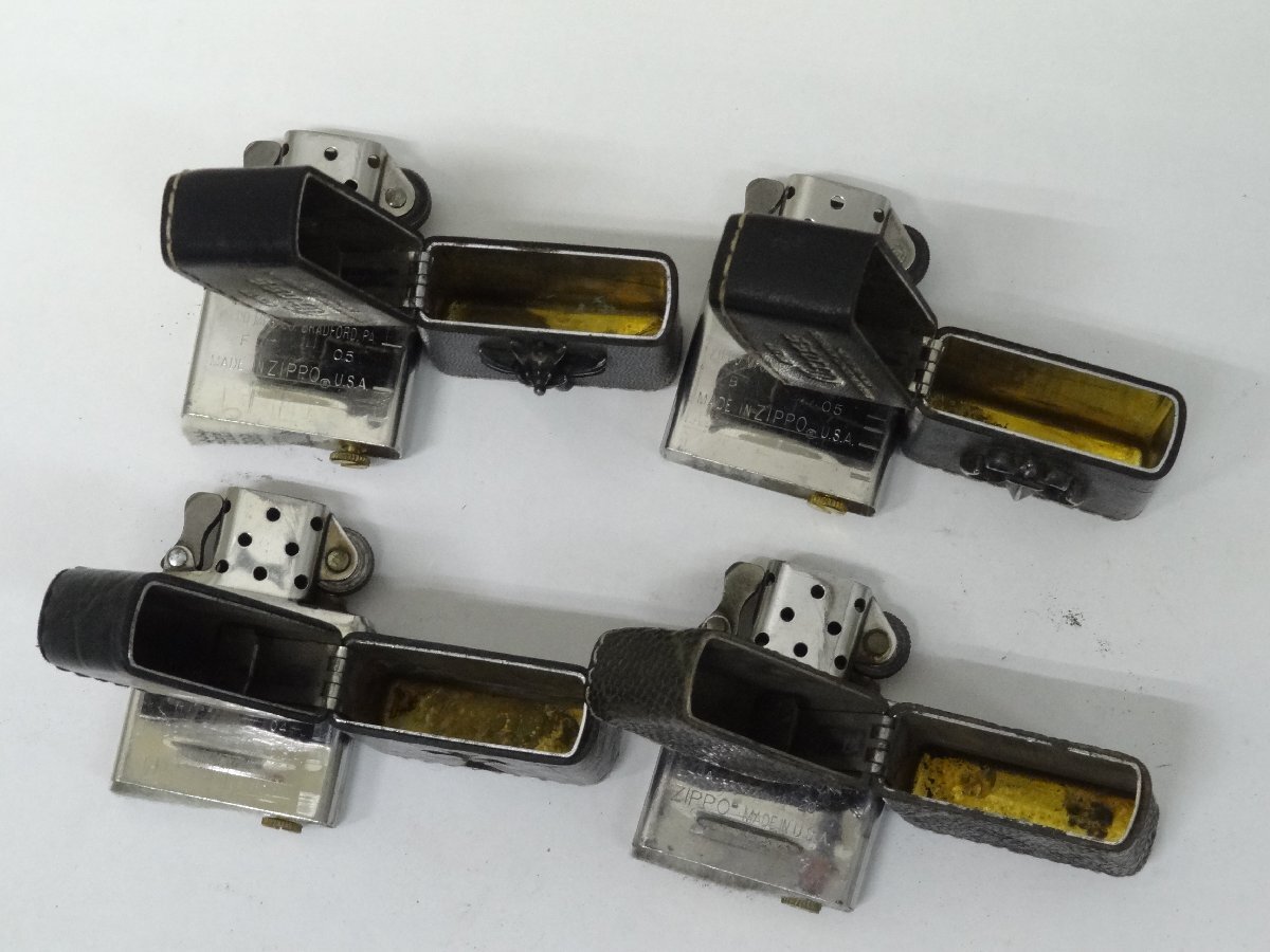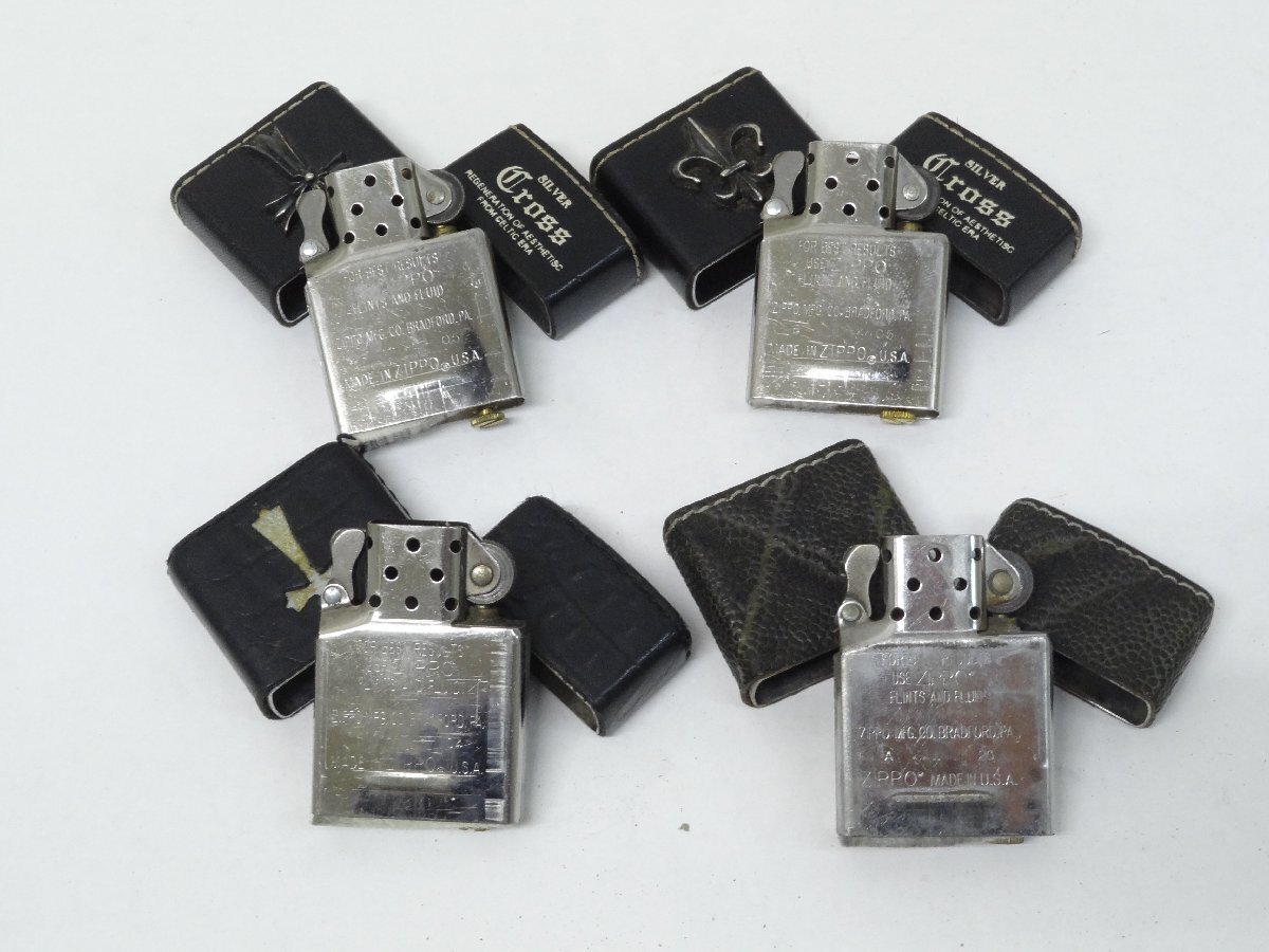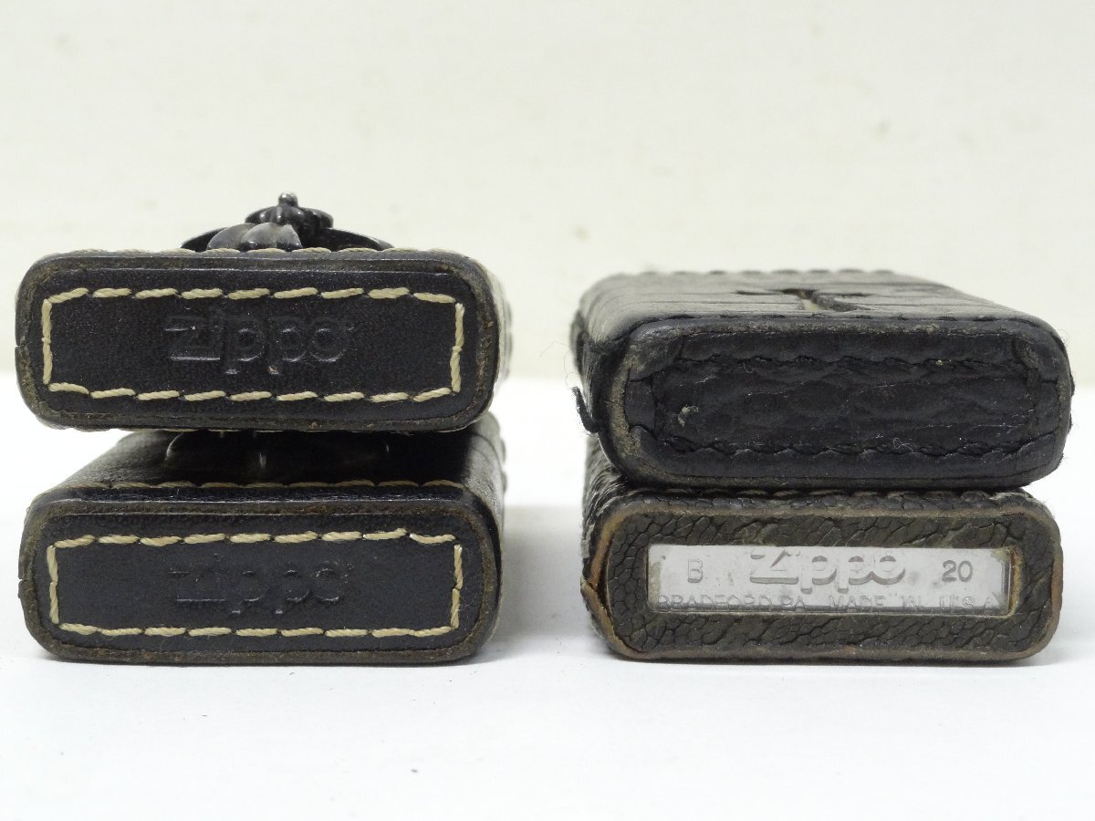 ユ■/Zこ9719 Zippo ジッポ 革張り 4個セット / 着火未確認 ジャンク 保証無 // SILVER Cross メタル貼り