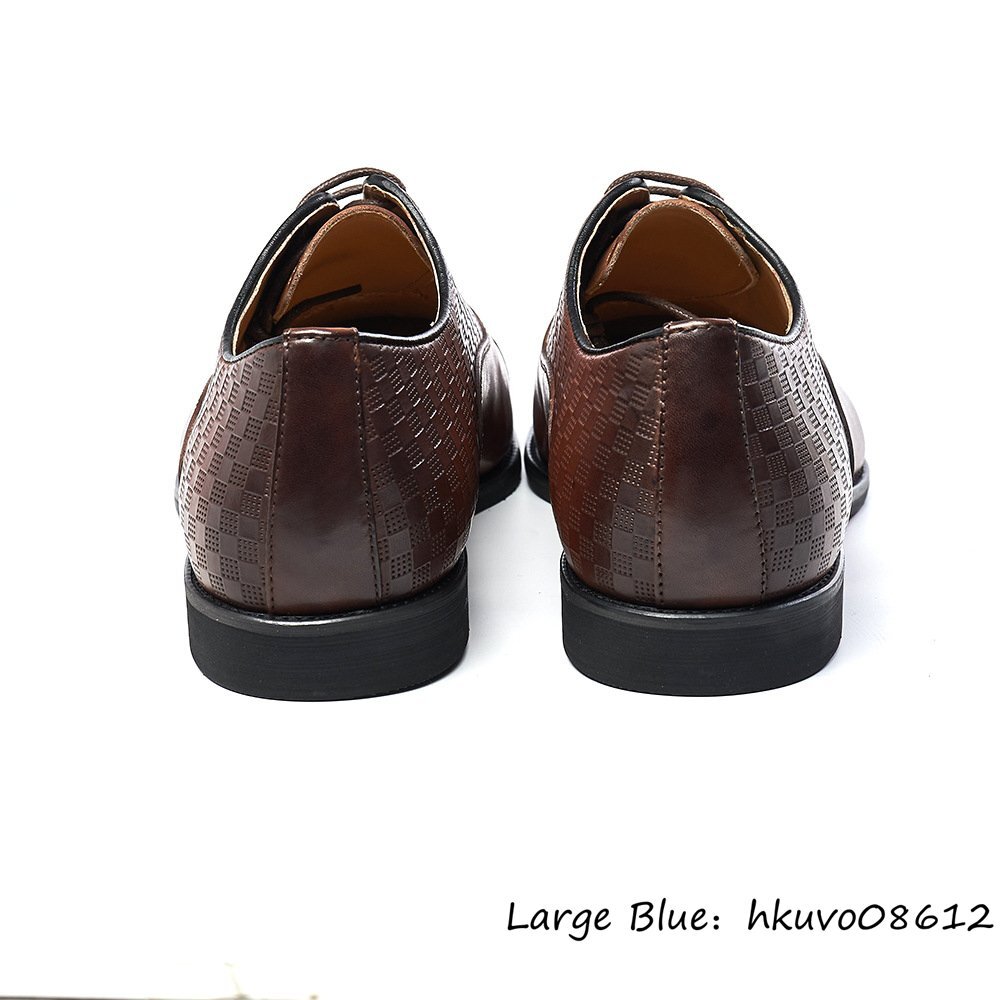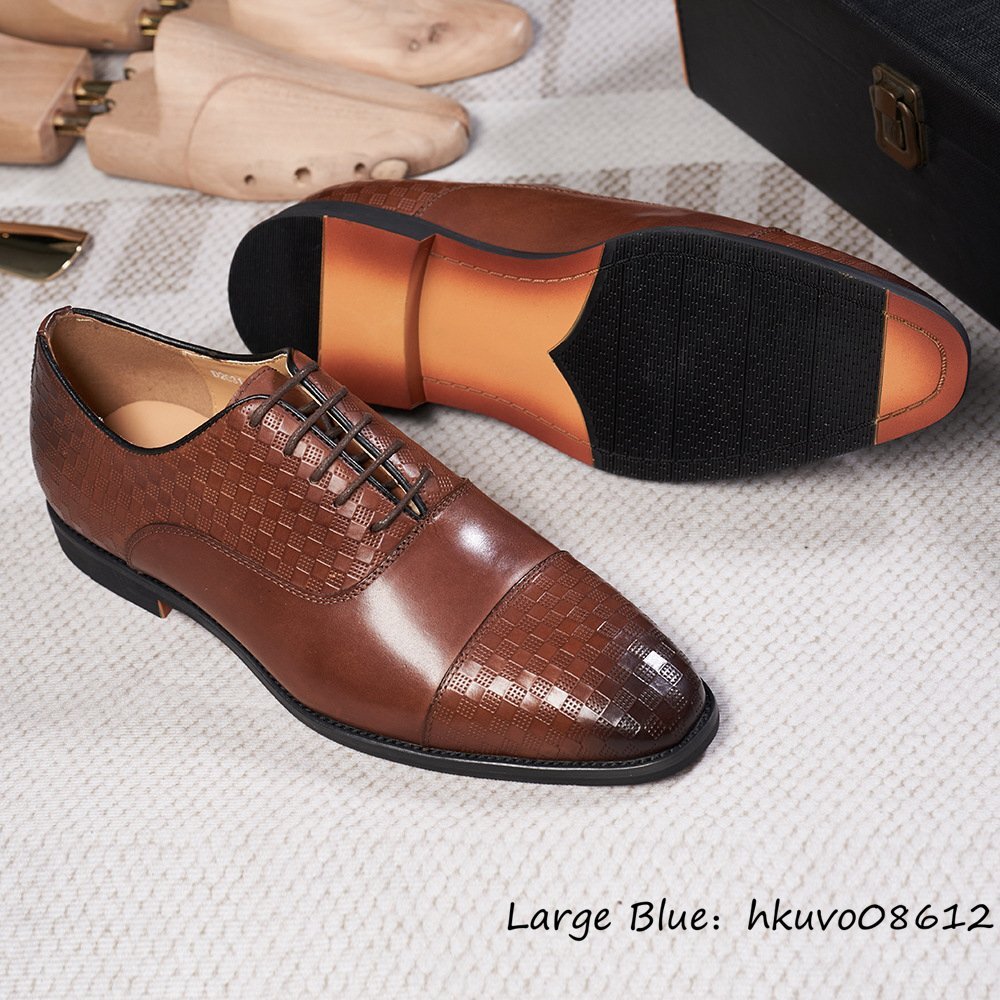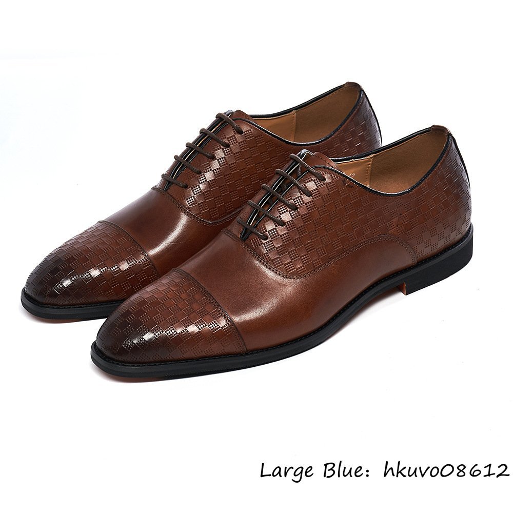 最高級◆定価9万 メンズシューズ 本革 レザーシューズ 牛革 ビジネスシューズ 職人手作り 革靴 チェック柄 紳士靴 フォーマル 茶色 25.0cm