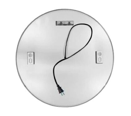 ●サイズ:直径80cmx厚さ4.5cm / 丸型 / 電源コードの長さ:150cm / 主な材質:フレーム:アルミ合金、鏡面:銀メッキガラス、背板:アルミ複合板 / 照明:LEDテープライト / 入力電圧:100V 、消費電力:24W