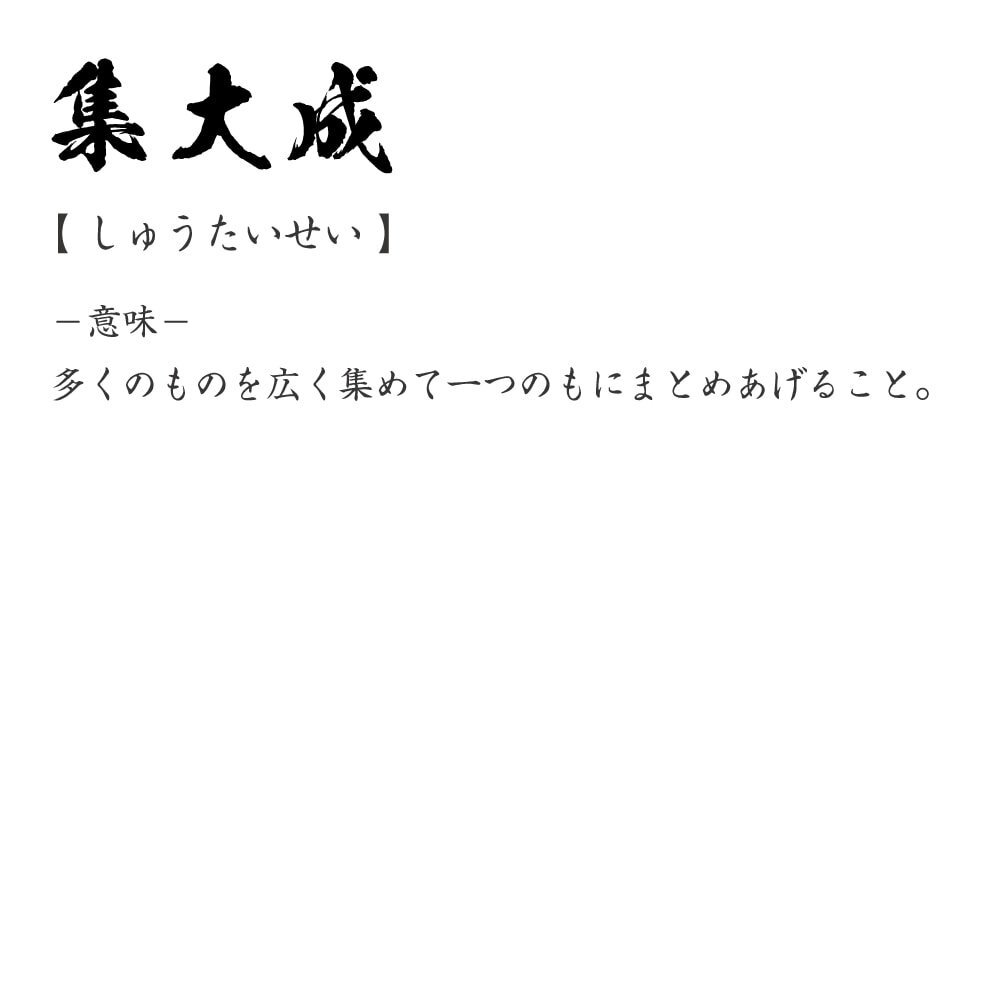 集大成 (しゅうたいせい) 書道家が書く プリント Tシャツ S M L XL XXL 120 130 140 390 G-S G-M G-L 【 三字熟語 】