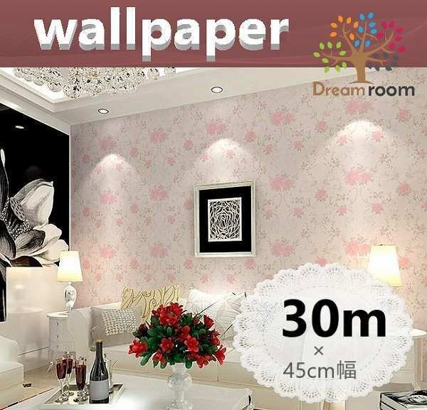 【 30m 】 3D 壁紙 45cm幅 薔薇 花柄 ピンク×白 アンティーク ウォールペーパー北欧風 インテリア 糊付き はがせる シール DIY 賃貸