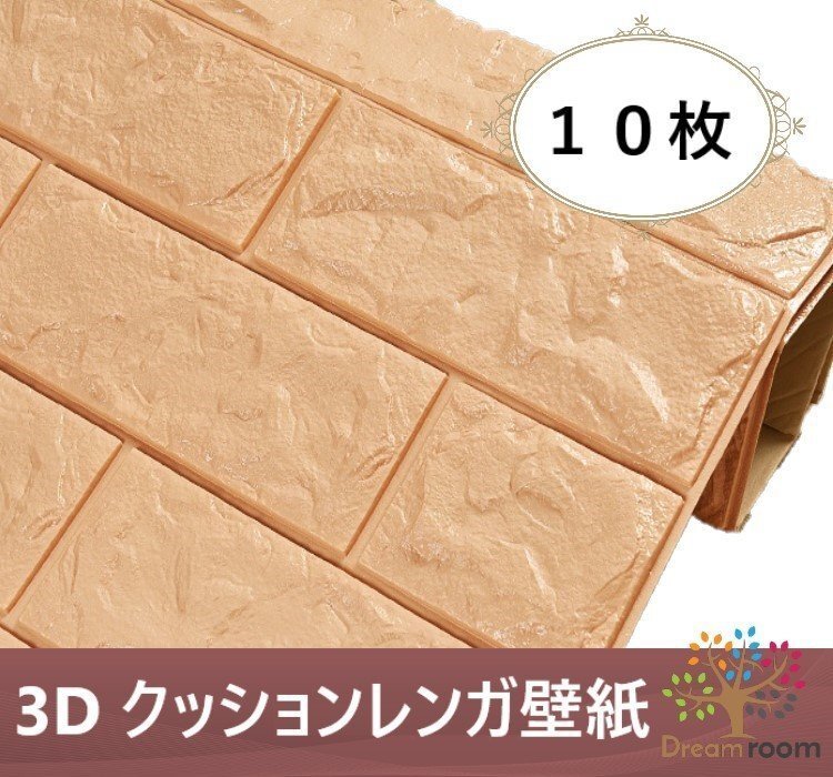 【10枚】高品質 3D クッション 壁紙シール ベージュ レンガ調 糊付き はがせる クロス 70×77cm アンティーク 耐水 抗菌 落書き 傷防止
