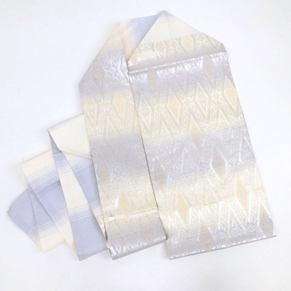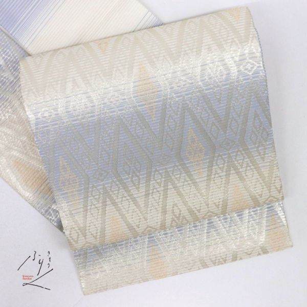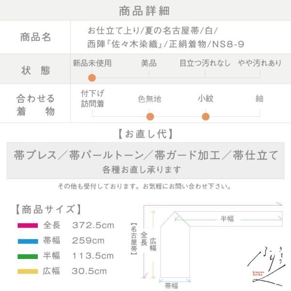 【名古屋帯】 仕立て上り 夏の名古屋帯 西陣 『佐々木染織』 白 正絹着物 NS8-9