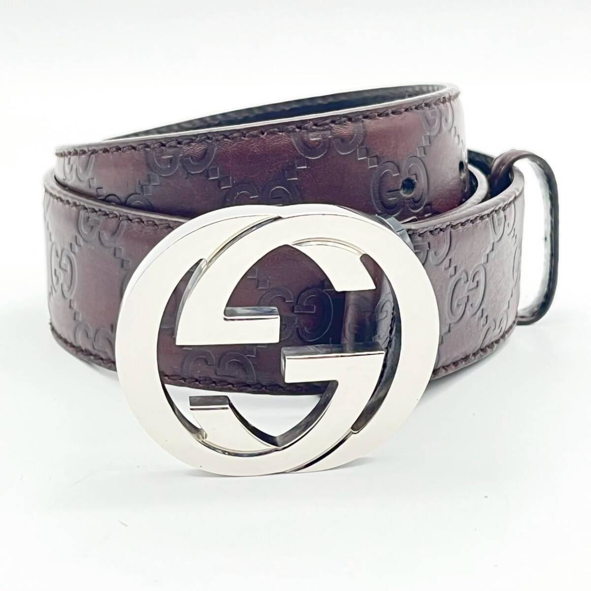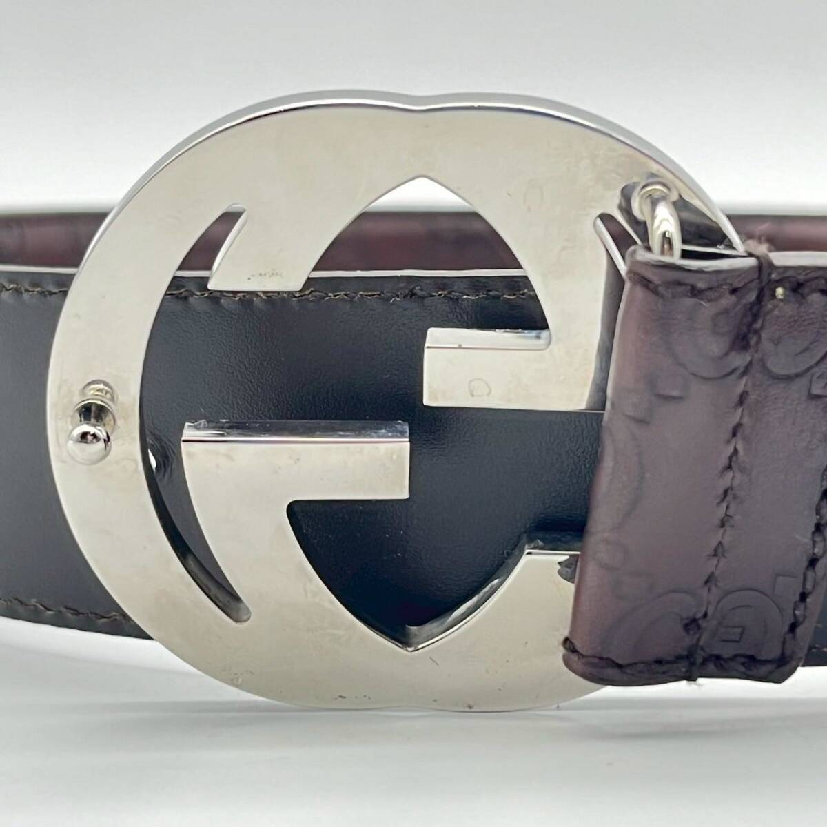 SW0328-6-3 GUCCI グッチ GGロゴ レザーベルト ダークブラウン イタリア製 114984・497717・80・32 全長95cm 60サイズ