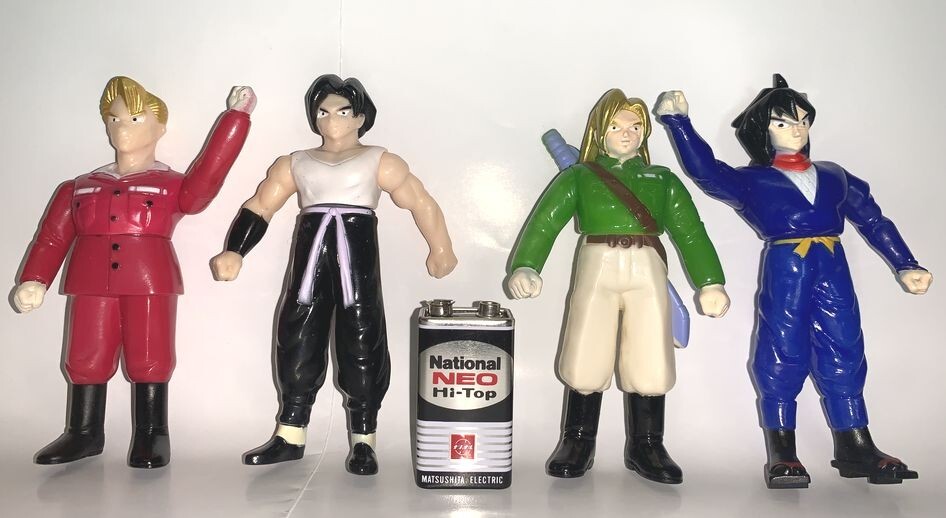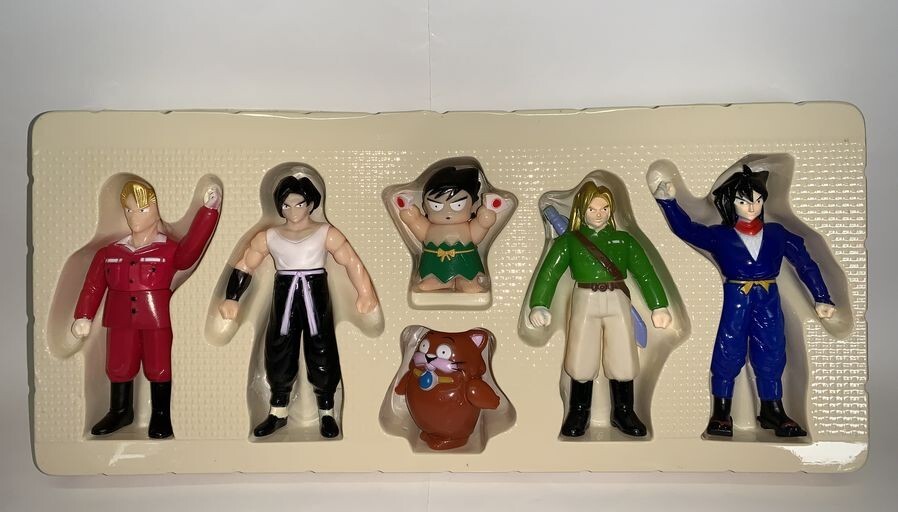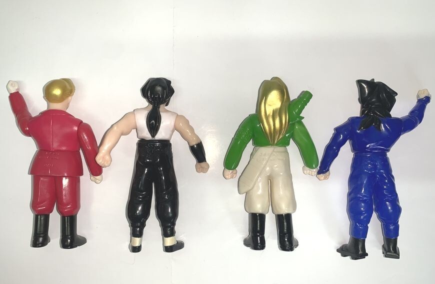 <<商品概要>> ソフビ人4体と指人形2体がセットになった「みんな友達んばば6」1箱です。 外箱のダメージが顕著ですが未使用です。