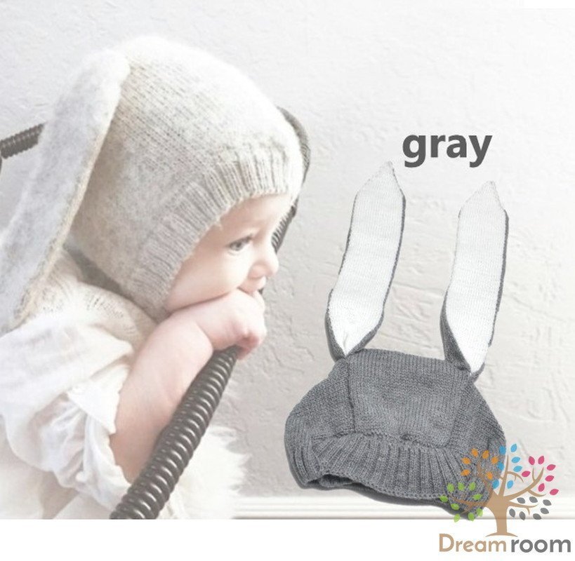 1スタ☆たれ耳がcute☆ラビットヘッド ベビーニットキャップ【グレー 】ヘアバンド ヘッドガード ヘアアクセ ニット帽子 赤ちゃん コスプレ K-259