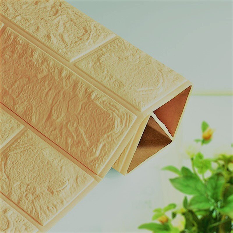 【30枚】高品質 3D クッション 壁 シール 明るめライトベージュ レンガ調 糊付き リメイク 70×77cm 耐水 抗菌 傷防止