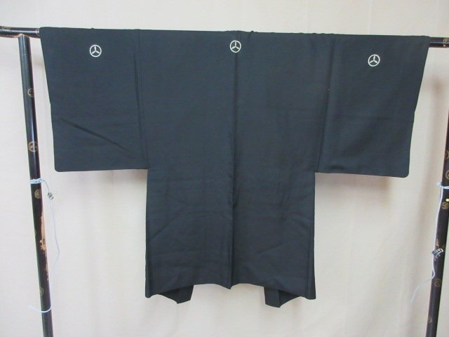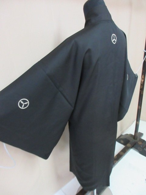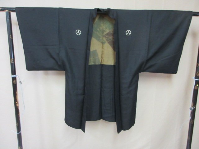 商品名 | 1円 中古 正絹 紋付羽織 男性用 アンティーク 正装 家紋 羽裏 袷 着物 身丈93cm 裄64cm【夢職】★ |