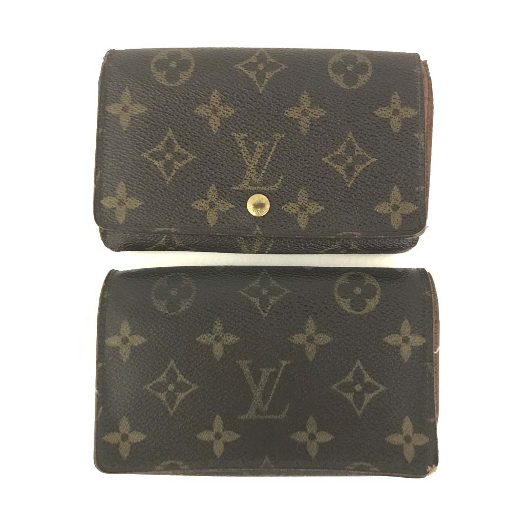 1円 LOUIS VUITTON ルイヴィトン レザー モノグラム ポルト モネ ビエ トレゾール L字ジップ 二つ折り財布 2点セット ブラウン /ZX1058