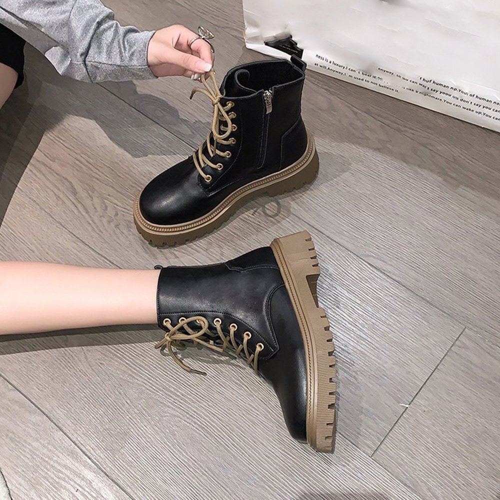 トラックソールブーツ レディース 歩きやすいレースアップシューズ 痛くないアンクルブーツ サイドファスナー カジュアル靴