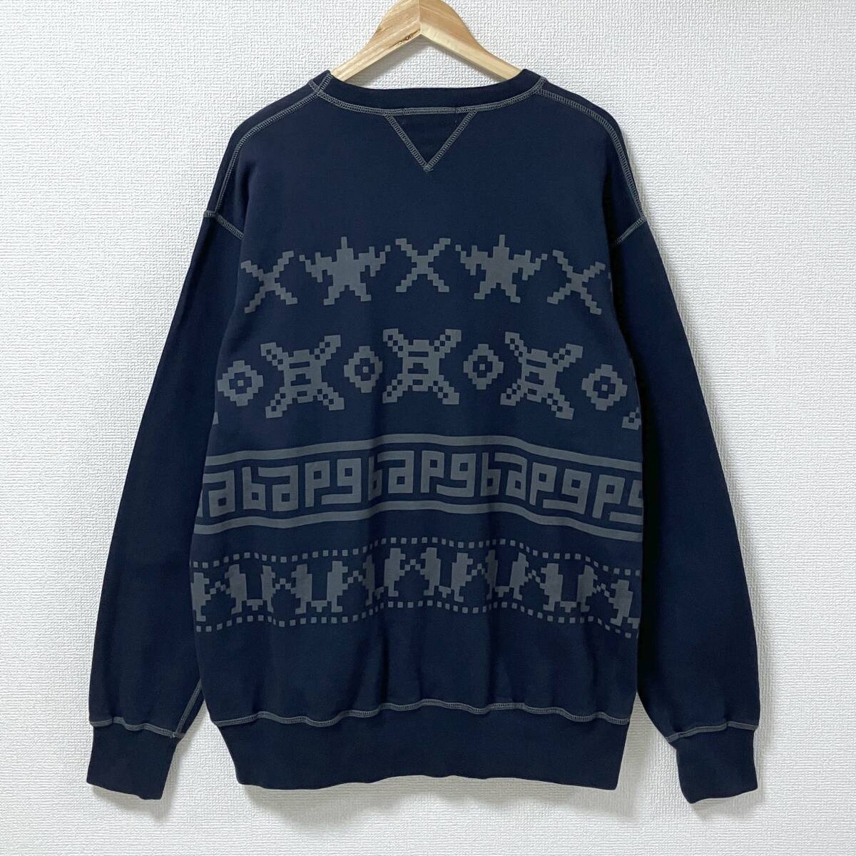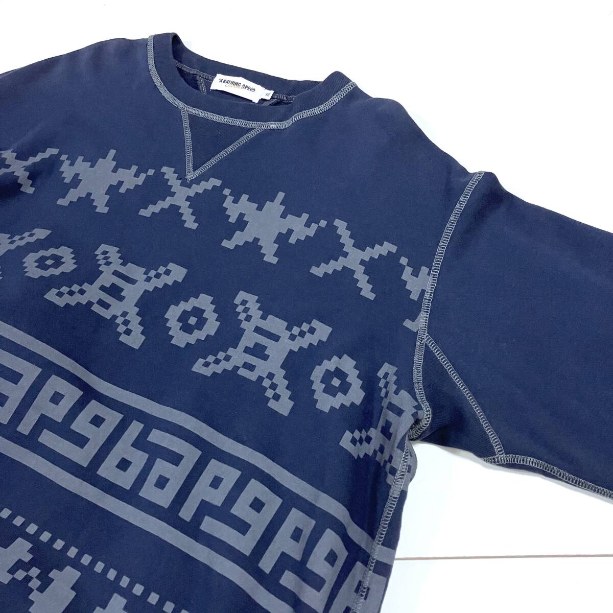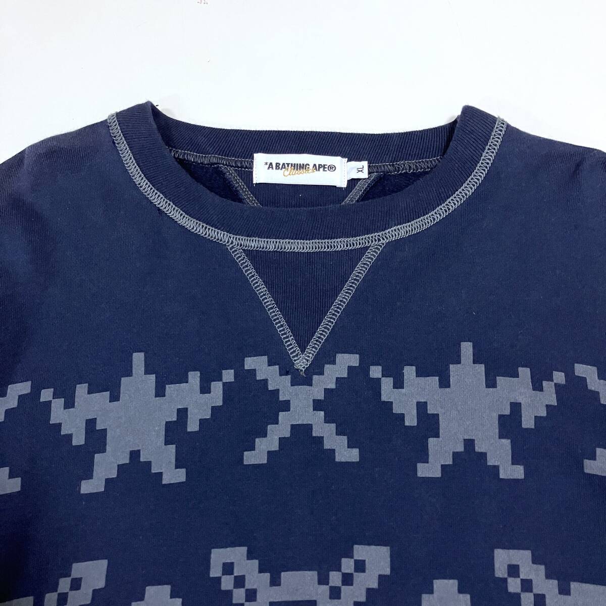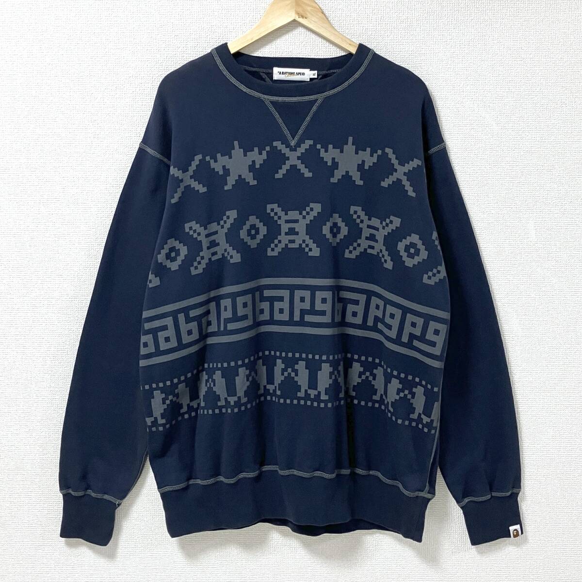 A BATHING APE 両V デジタル柄 ノルディック スウェット ネイビー 紺 メンズ XLサイズ アベイシングエイプ NIGO トレーナー 5070340