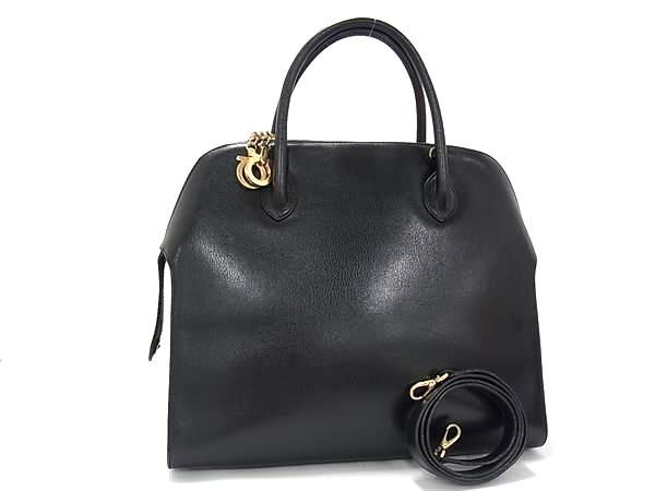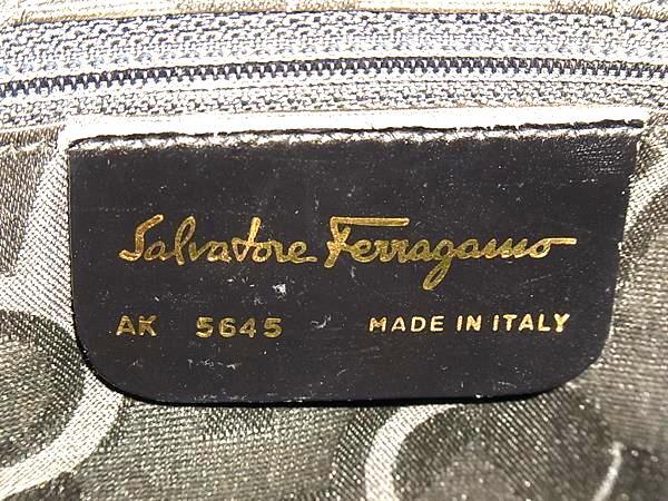 1円 ■美品■ Salvatore Ferragamo フェラガモ AK 5645 ガンチーニ レザー 2WAY クロスボディ ハンドバッグ ショルダー ブラック系 FV0337