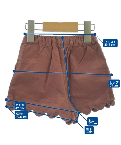 | ウエスト:39.5cm,裾周り:40.5cm,ヒップ:55cm,わたり:42cm,股上:22cm,股下:3cm |
