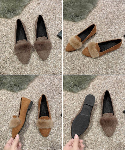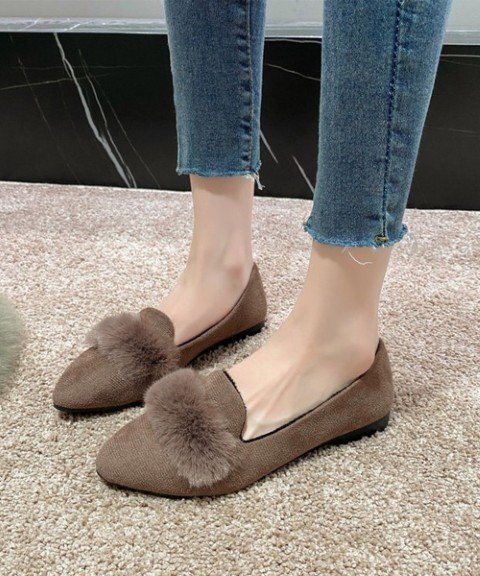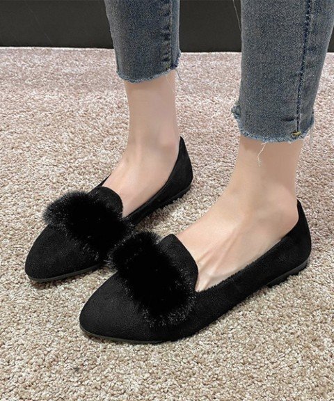ふわふわのエコファーモチーフがポイントのフラットパンプス。