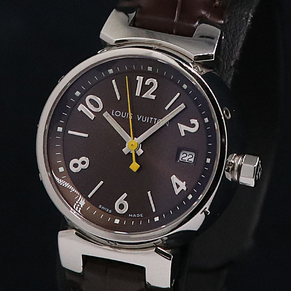 1円 稼働 良品 ルイヴィトン ブラウン文字盤 QZ タンブール Q1121 レディース腕時計 0016500 11RKT KMR