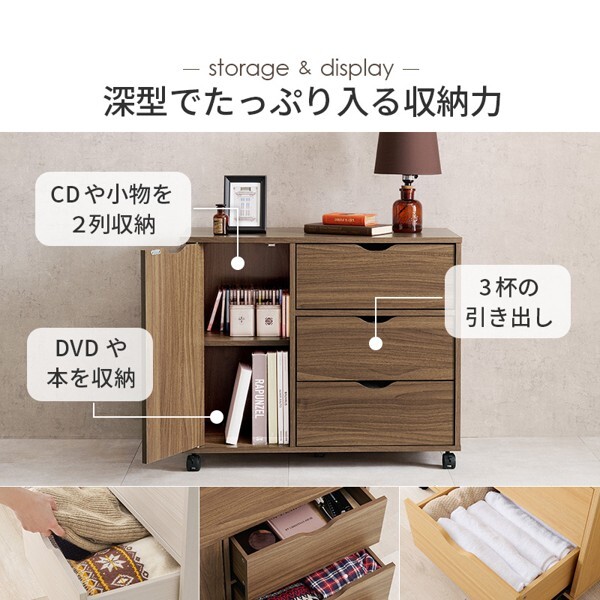 ※現在ご覧の商品ページはホワイトのご購入ページとなります。 ヤフオクの仕様上単一ページに複数バリエーションを掲載することができませんので、他バリエーションが希望の場合は別ページでご購入お願い致します。 スッキリとしたデザインで移動に便利なキャスター付き。 たっぷり収納できる引き出しと出し入れしやすい扉収納タイプ。 配達業者を指定いただくことはできません。 北海道/沖縄/離島のお届けに別途中継料金が発生します。 ※別途送料が発生する場合は後ほどご連絡させていただきます。 当店は正規店です。 タイミングによっては在庫切れの場合があります。