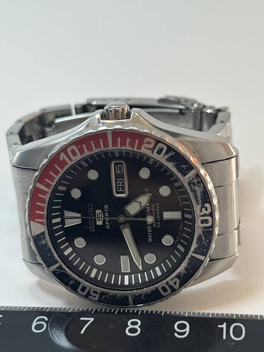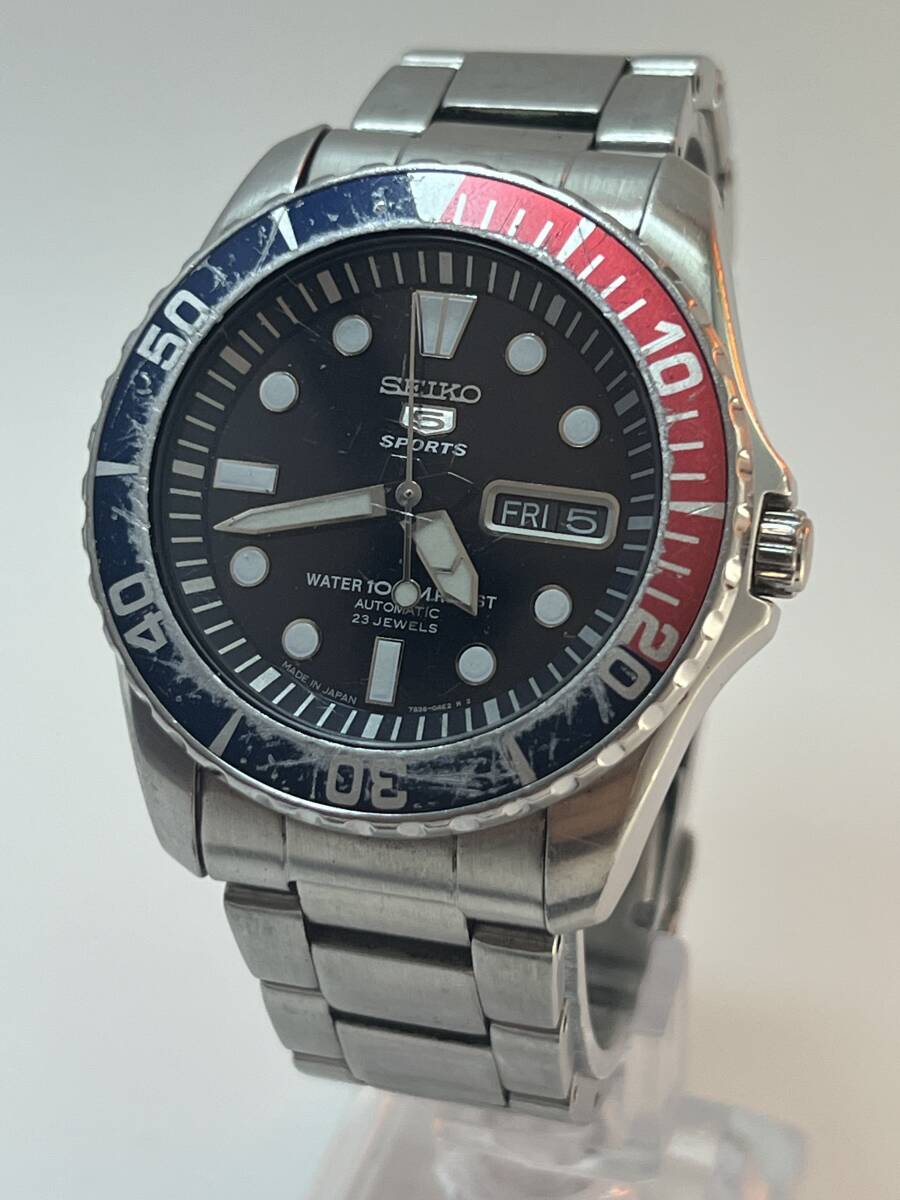 レア 動作未確認 SEIKO セイコー SEIKO5 SPORTS セイコー5 スポーツ 自動巻 メンズ 腕時計 ペプシベゼル 100mダイバー 裏蓋なし