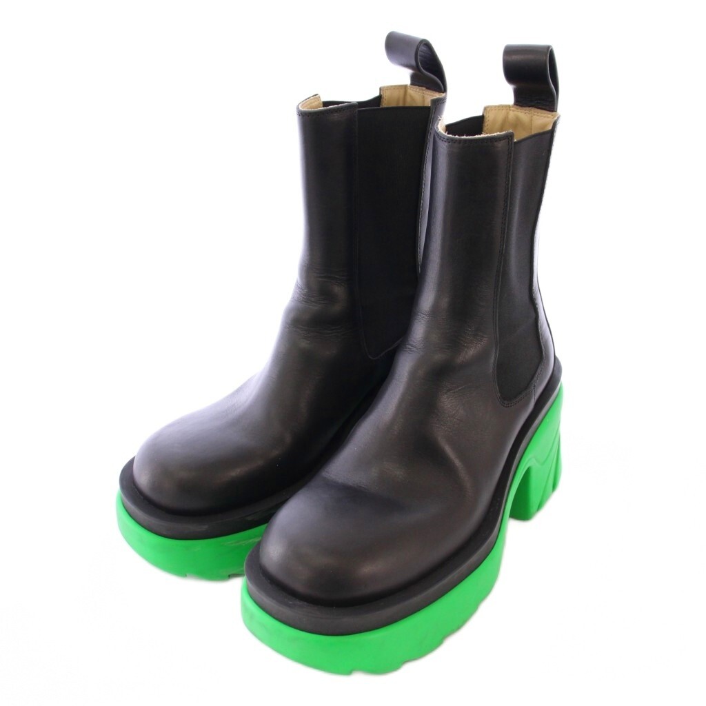ボッテガヴェネタ BOTTEGA VENETA ラッシュレザーチェルシーブーツ ショートブーツ 厚底 バイカラー 36 黒 ブラック 緑 グリーン