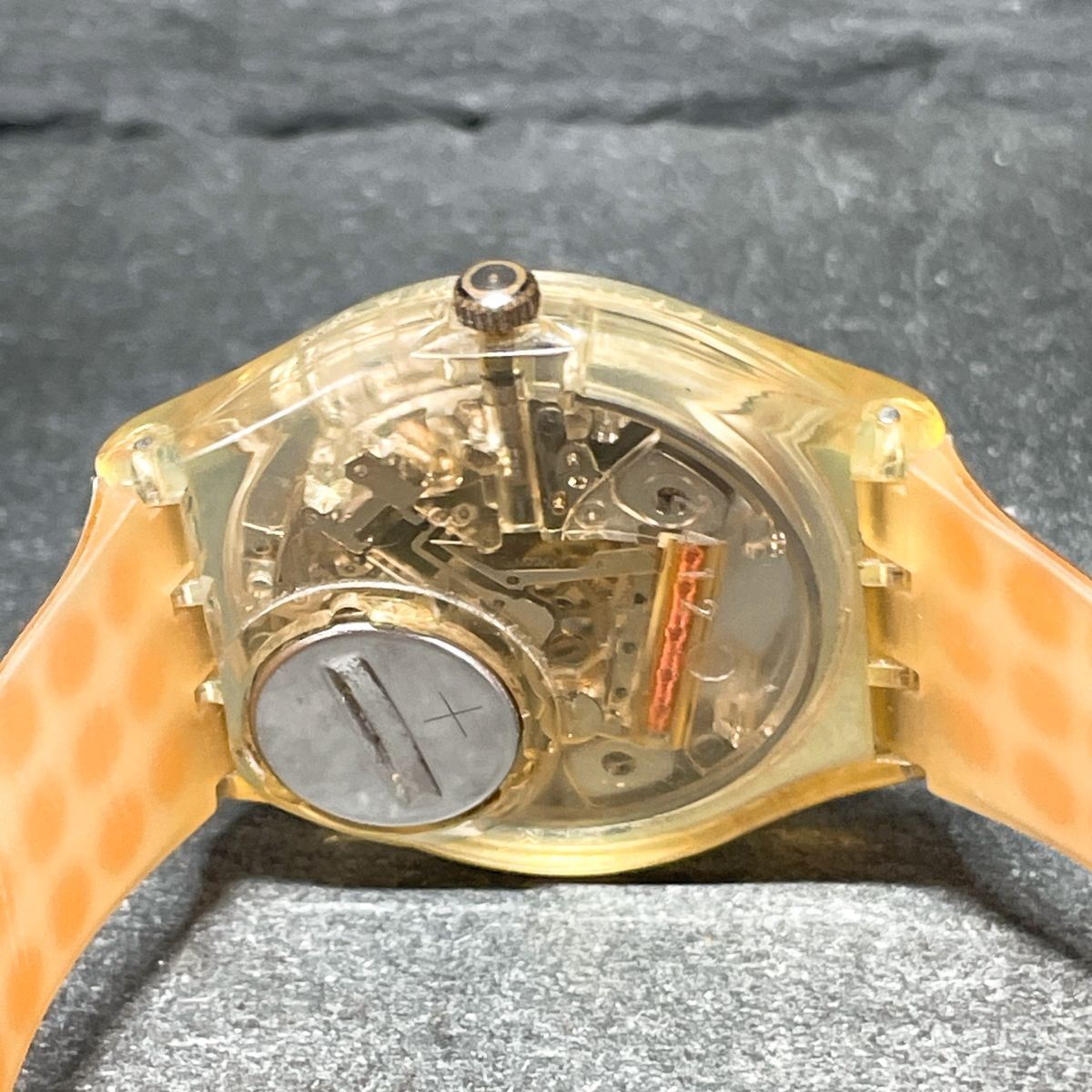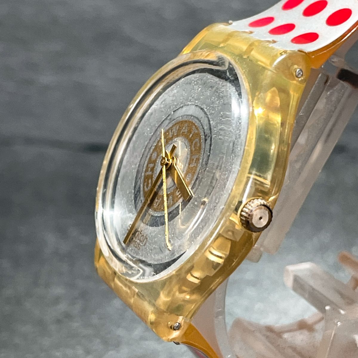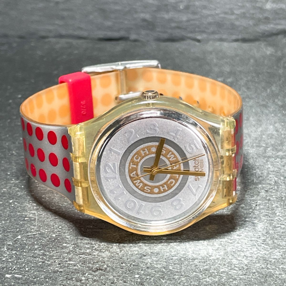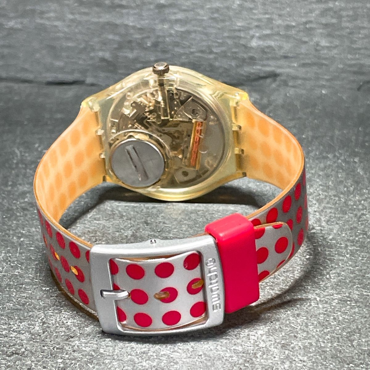 Swatch スウォッチ AG1991 腕時計 アナログ クオーツ 3針 スケルトン シルバー文字盤 ラバーバンド レッド ラウンド 動作確認済み