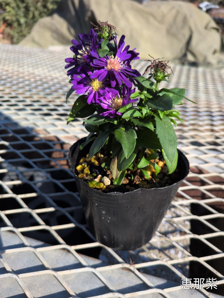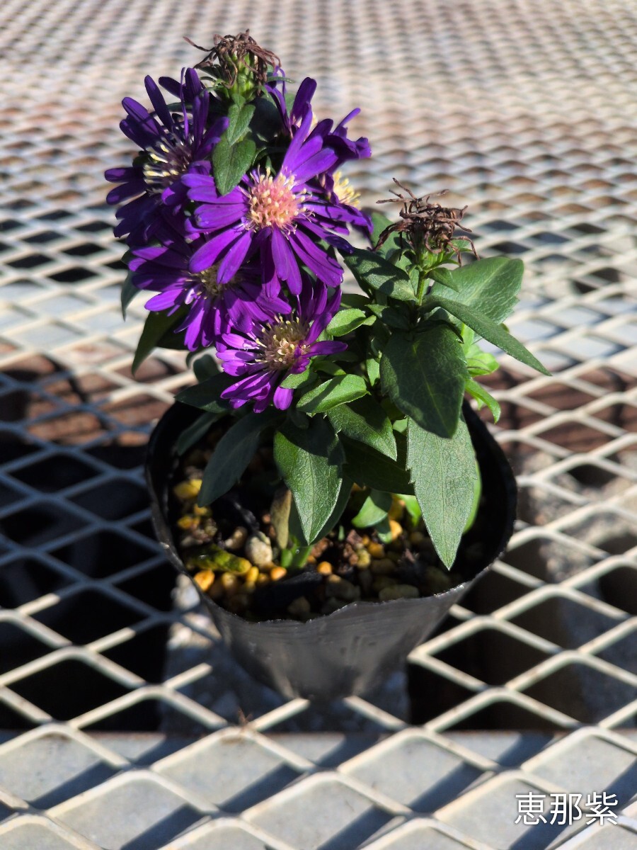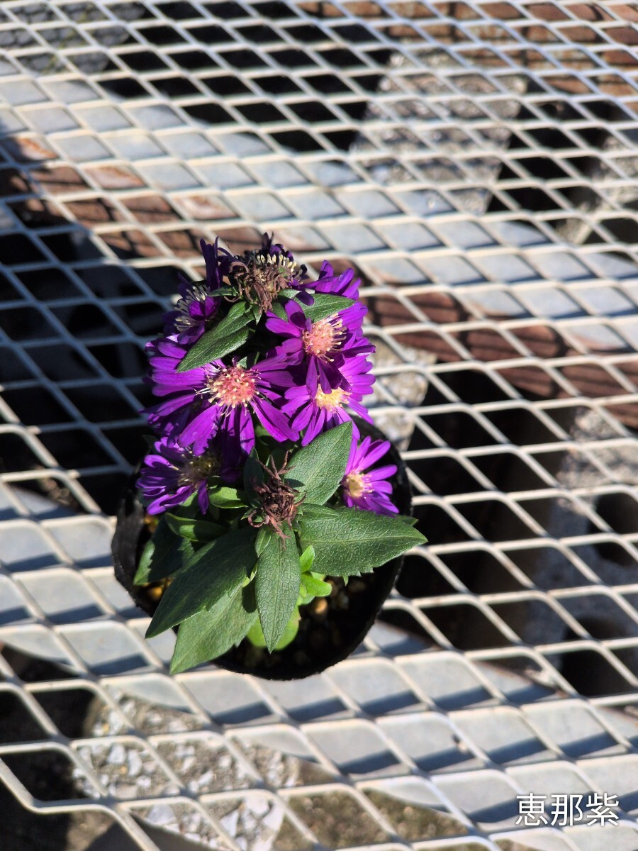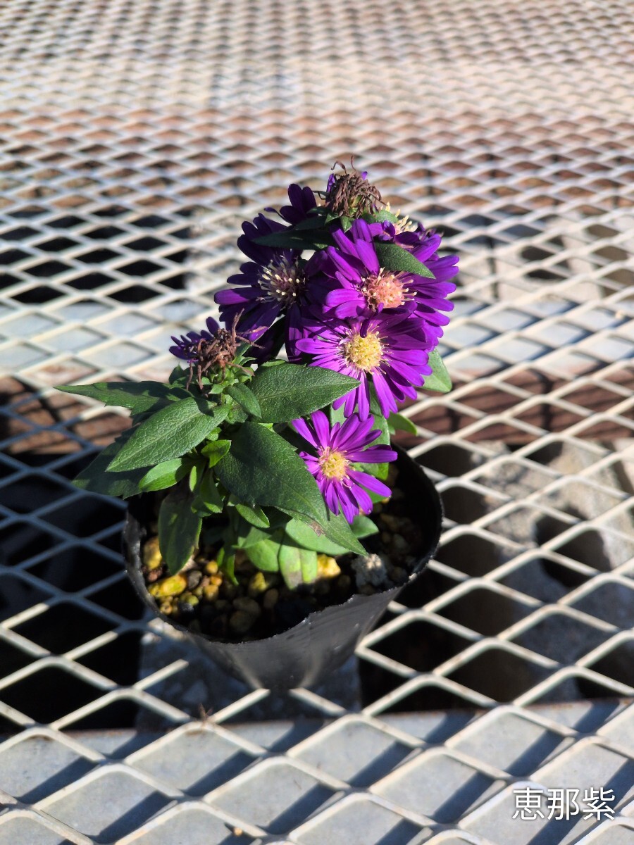 岐阜県恵那市で見出されたユウゼンギクの濃色個体「恵那紫」です。9センチポット植えです。葉っぱの痛みなど気になる方は画像で判断してください。