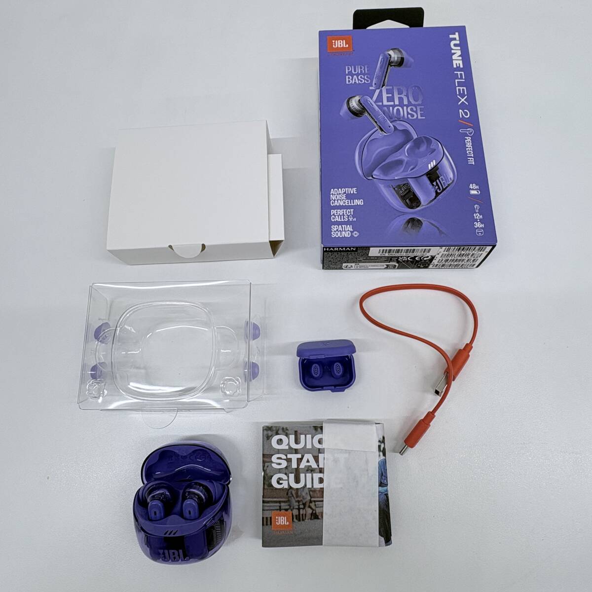 ▲【JBL】HARMAN TUNE FLEX2 パープル 紫 ワイヤレスイヤフォン 美品 ハイブリッドノイズキャンセリング 防水 防塵★4247