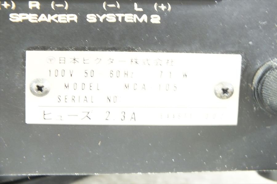 | ◆商品◆ メーカー---------Victor ビクター 型式-------------MCA-105 付属品-----------画像に写っているものがすべてになります。 ◆外装ランク◆ 【 C 】 ◆状態◆ 中古品の為キズや汚れなどの使用感はご容赦ください。 1 R/L音出し確認済み 音質変化確認済み 音量変化確認済み 録音機能未確認 端子くすみや腐食有り 【重要】配送送料と送料に送料が0円と表示される場合がございますが、出品画面に記載の送料が落札後にご精算されます。 | |||||||||||||||||
