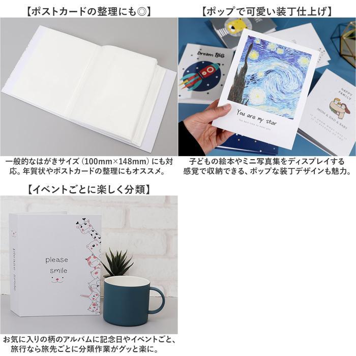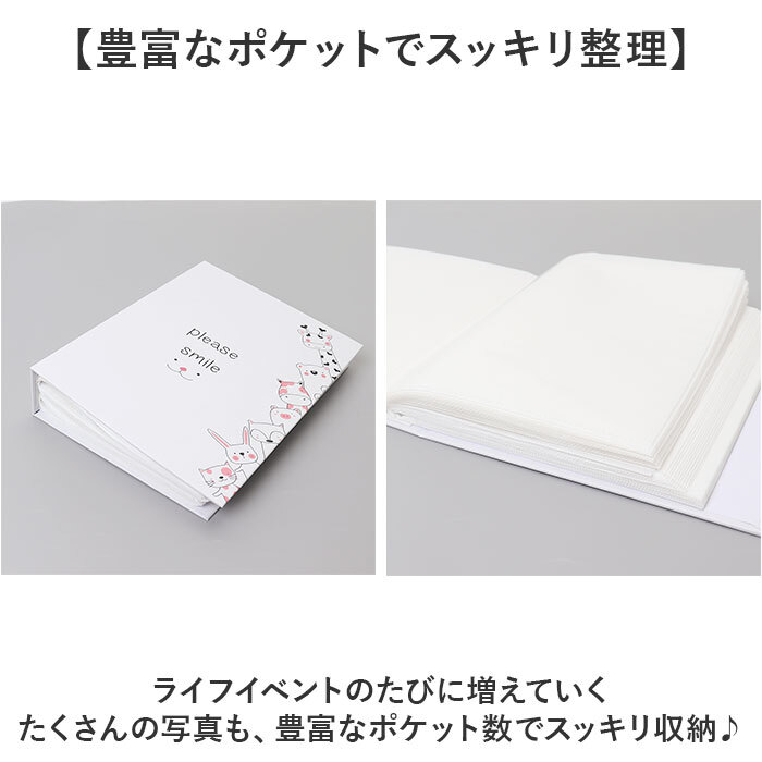| 商品説明 | ・・【思い出のフォトをひとまとめ!】 ・ポップで可愛らしいブックに、2L版写真がたっぷり収納できる「大容量フォトアルバム」。 ・【気軽に手に取れるブックサイズ】 ・ご家族の笑顔のフォトを小説のように気軽に手に取って眺められるブックサイズにギュッと凝縮。 ・【コンパクトなのにたっぷり100枚】 ・縦向きにした2L版サイズの写真を1ページにそのまますっぽり、合計100枚収納できる大容量設計。 ・【豊富なポケットでスッキリ整理】 ・ライフイベントのたびに増えていくたくさんの写真も、豊富なポケット数でスッキリ収納♪ ・【ポストカードの整理にも◎】 ・一般的なはがきサイズ(100mm×148mm)にも対応。年賀状やポストカードの整理にもオススメ。 ・【ポップで可愛い装丁仕上げ】 ・子どもの絵本やミニ写真集をディスプレイする感覚で収納できる、ポップな装丁デザインも魅力。 ・【イベントごとに楽しく分類】 ・お気に入りの柄のアルバムに記念日やイベントごと、旅行なら旅先ごとに分類作業がグッと楽に。 |