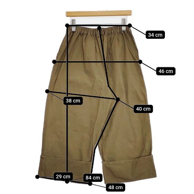| 仕様 | フロント:なし ポケット:あり 透け感:なし 裾:ダブル ウエスト調整:一部ゴム 裏地:なし |