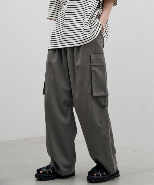 キーワード:カーゴパンツ メンズ ウエストゴム ストレート ハイウエスト フルレングス ワイドパンツ 無地