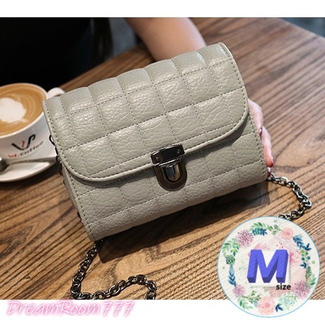 classic キルティングレザー チェーンBAG 【D型 グレー M】クラッチバッグ 革 ハンドバッグ 海外セレブ K-067-2