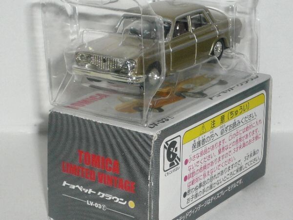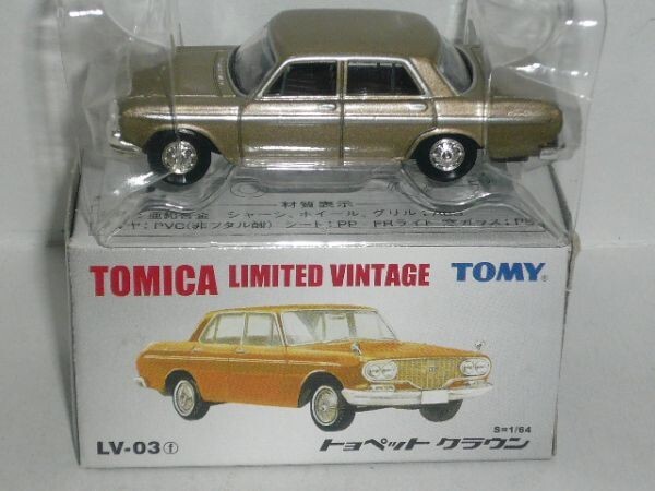 TOMICA LIMITED VINTAGE LV-03f トヨペット クラウン 薄金(中国製)です。箱に傷みがありますので、ご了承の上入札ください。 商品の状況は写真でご判断の上、ノークレーム・ノーリターンでお願いします。保証はできませんが、定形外郵便での発送も可能です。