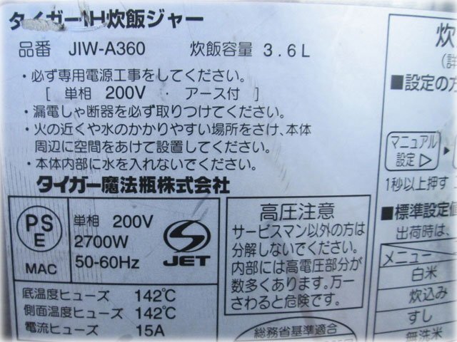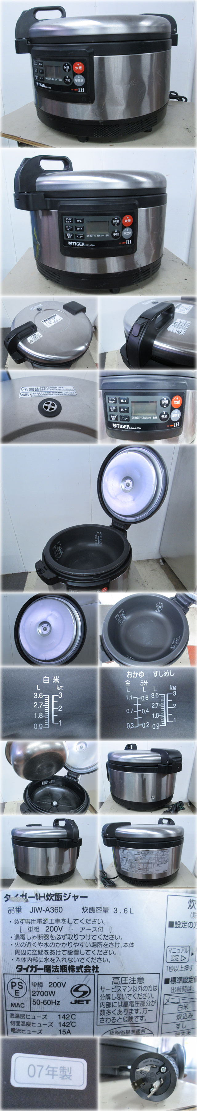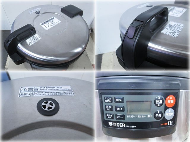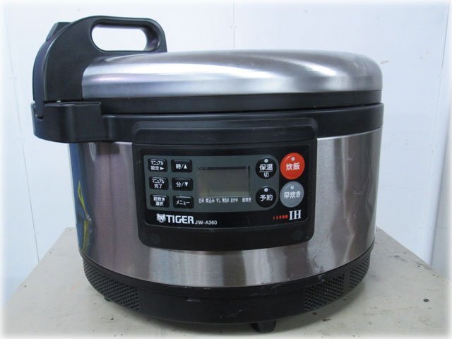 タイガー魔法瓶 業務用IH炊飯ジャー 炊きたて JIW-A360 を出品いたします。 ■特徴■ お店も納得の丈夫なボディ、 品質を兼ね備えた業務用IH炊飯ジャー IH加熱、2層構造の厚釜を採用 磁力線の作用で釜自体が発熱、 ハイパワーで炊きあげるIH(電磁)加熱と 火通りがよいステンレスとアルミの2層遠赤釜で、 ごはんをふっくらおいしく炊きあげます。 無洗米もおいしく炊ける多機能メニュー5種 水加減やお米の浸水時間を気にせずに 楽においしく炊ける「無洗米コース」のほか、 「白米・炊込み・すしめし・おかゆ」など 多彩なコースが選べます。 お店オリジナルのごはんが炊ける マニュアル炊飯コース 炊飯行程を「前炊き・火力・温度・むらし」の4行程に分け、 それぞれを調節できるので お店オリジナルのごはんが炊けます。 パナソニック SR-PGB36P同等品です。 ■仕様■