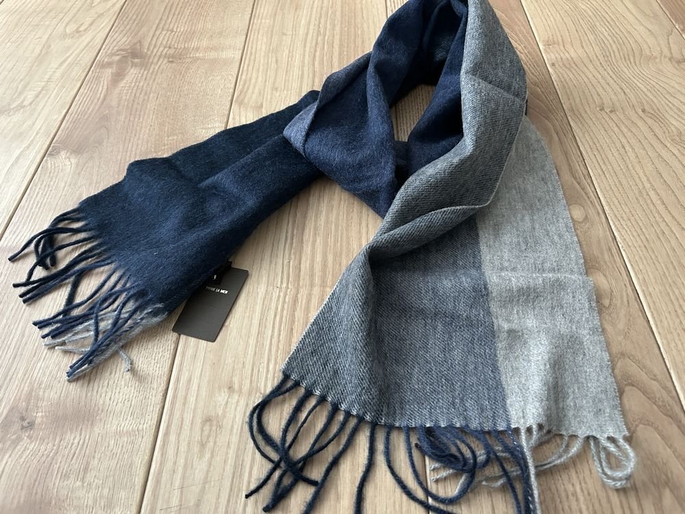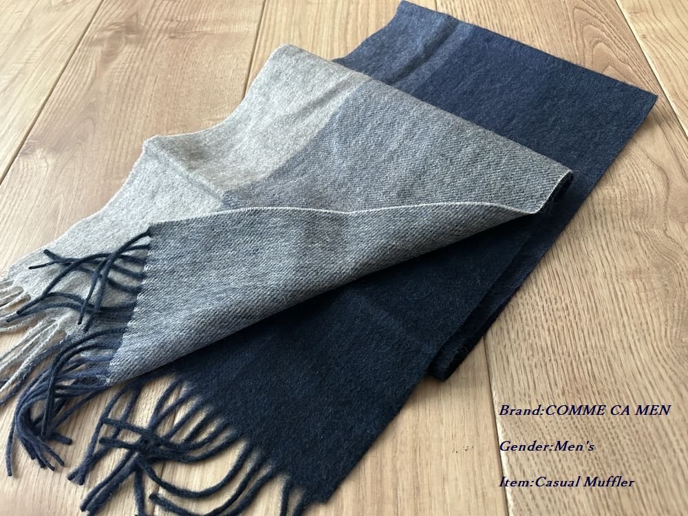 新品サンプル COMME CA MEN コムサメン バイカラーブロッキング マフラー 09ネイビー Fサイズ 56RI09 定価11,000円