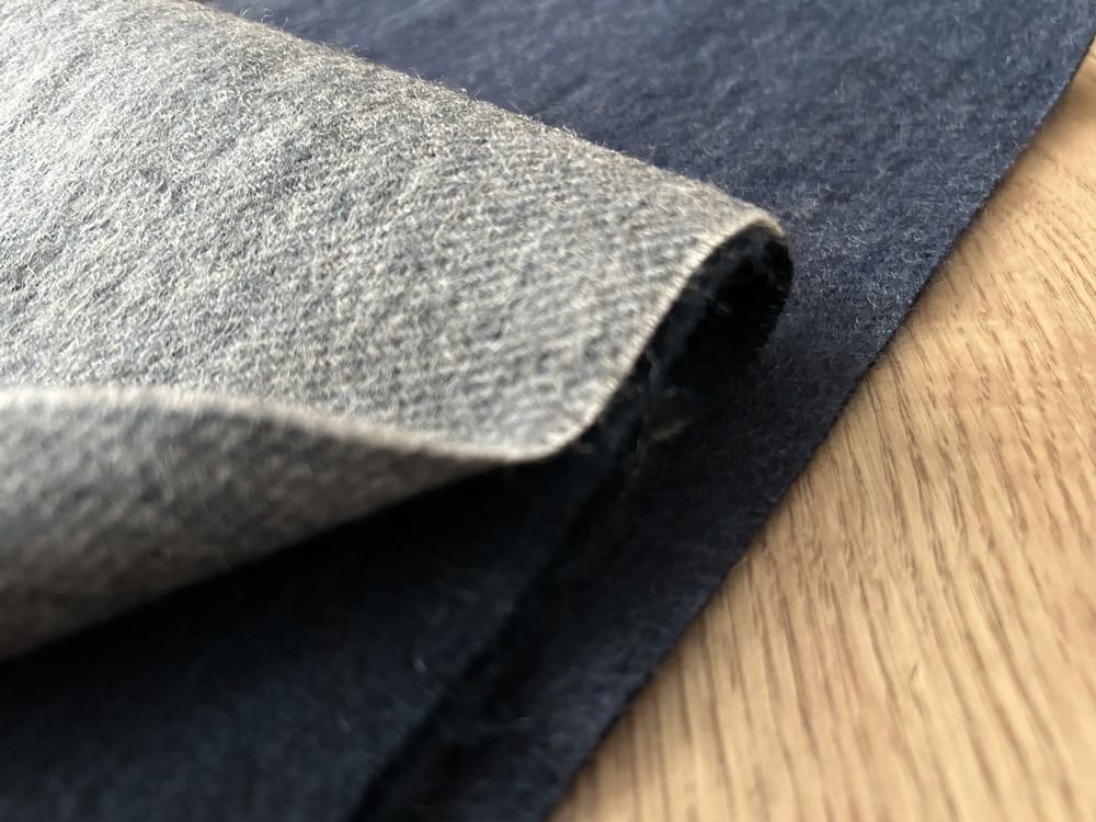 グラデーション状に配色したバイカラーのブロッキングマフラーです。