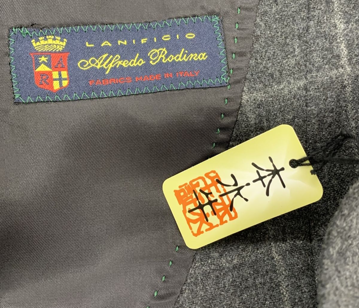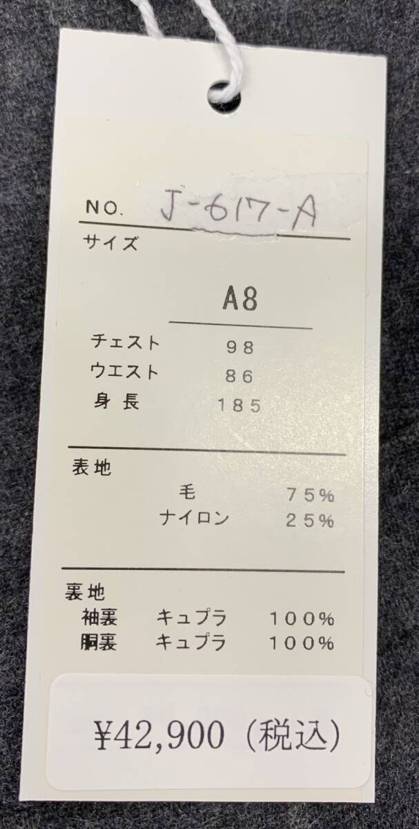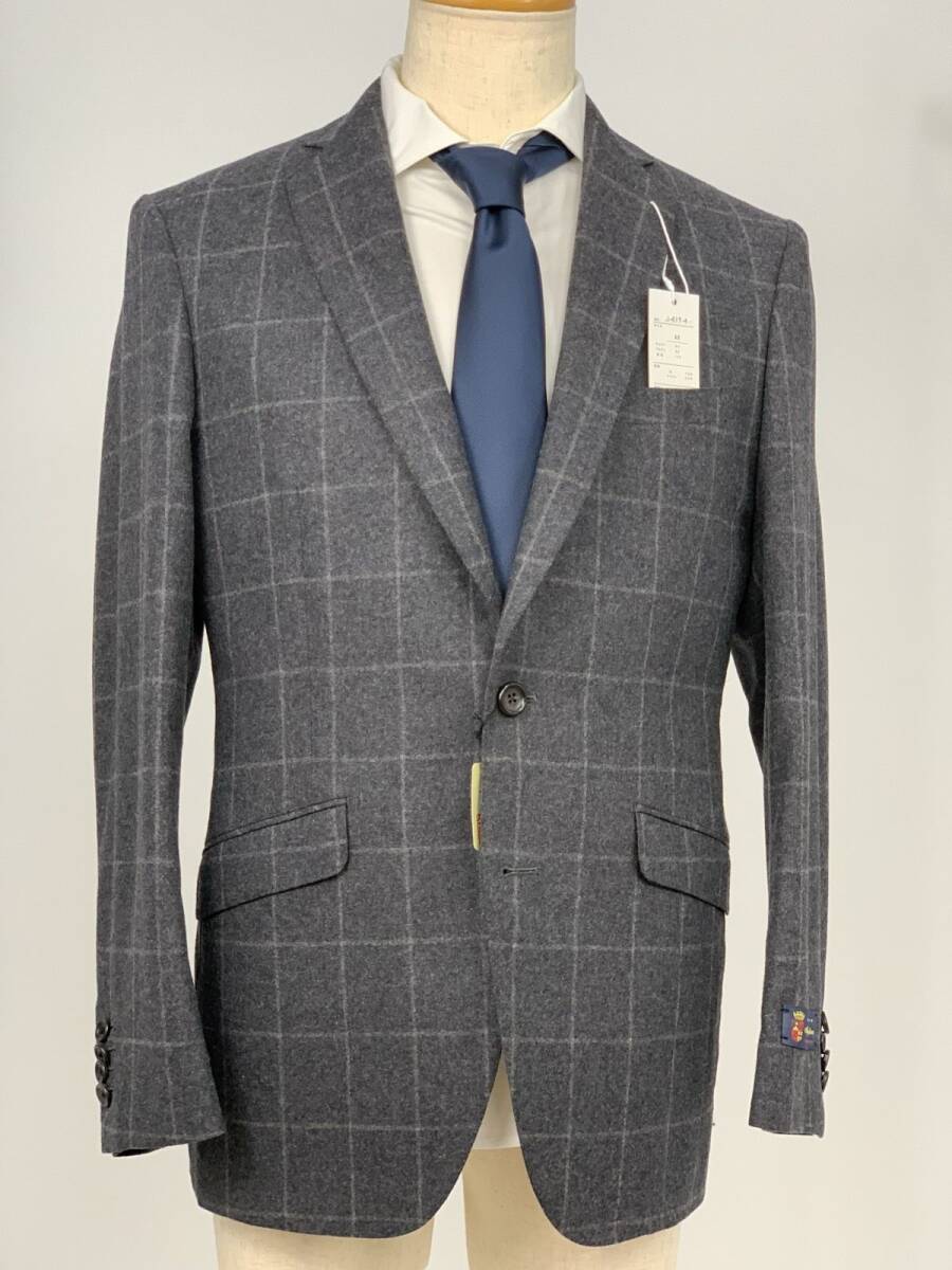 4.2万円 特価セール 新品 未使用 Alfredo Rodina 伊製生地 ウール テーラードジャケット ダークグレー A8 本水牛 スーツ 冬物 冬 98-2