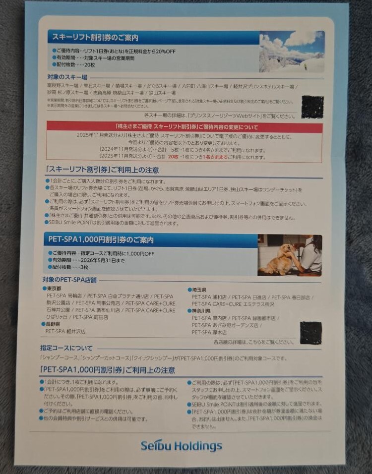 *西武ホールディングス株主優待* スキーリフト割引券20枚・PET-SPA1000円割引券3枚(電子チケット)C