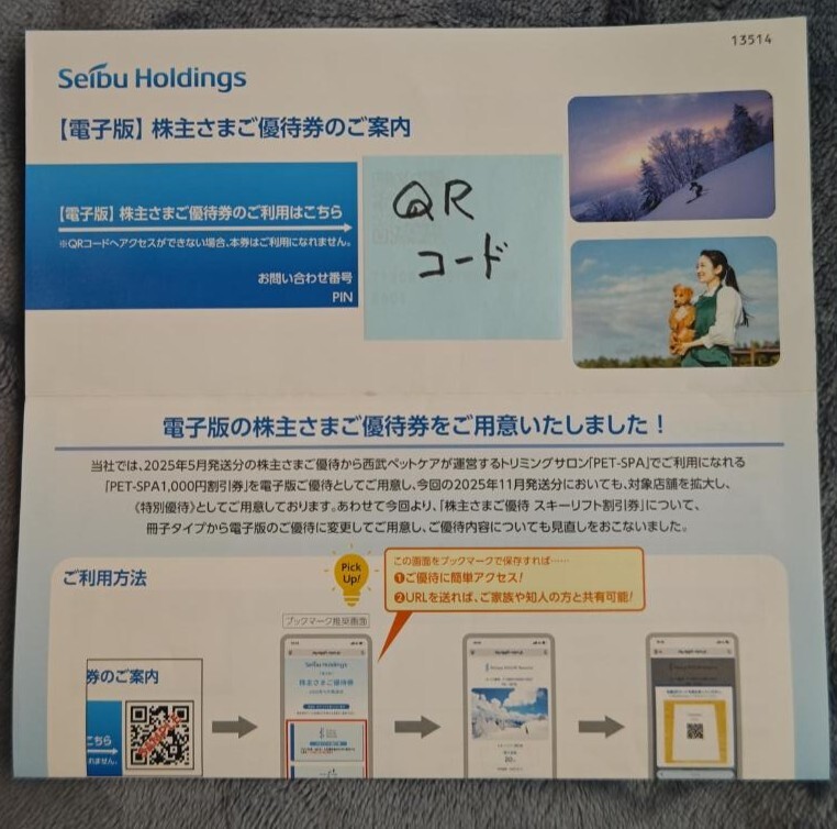 西武HDの株主優待券(電子チケット)