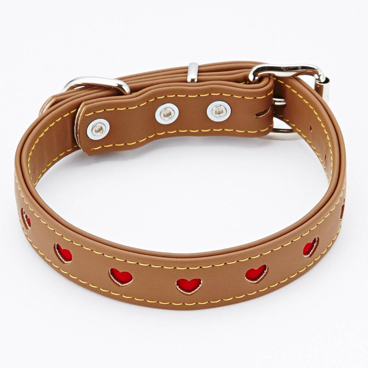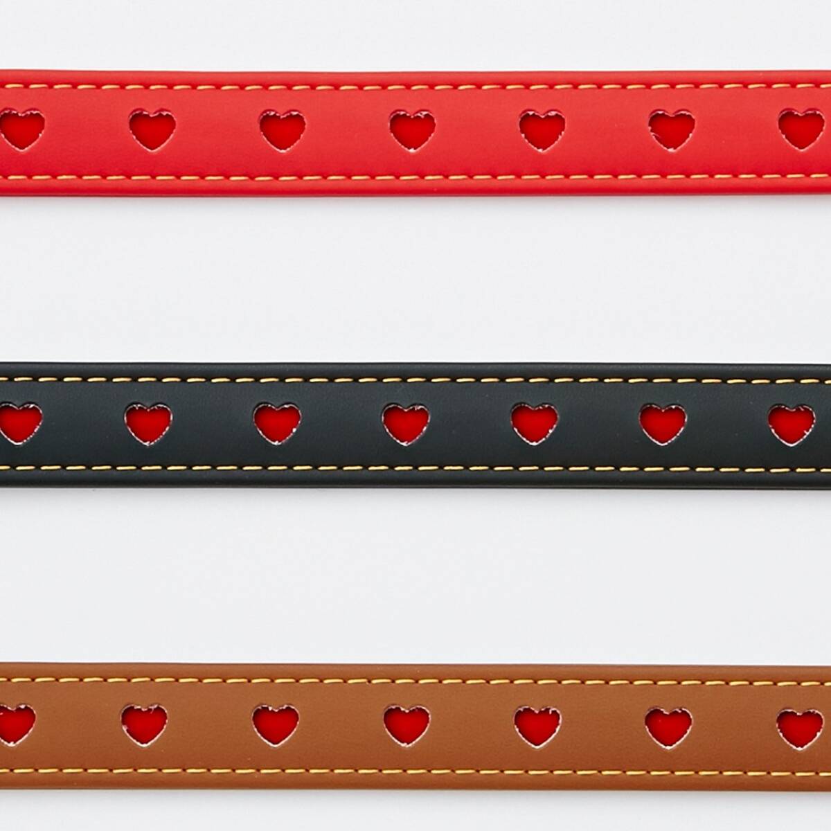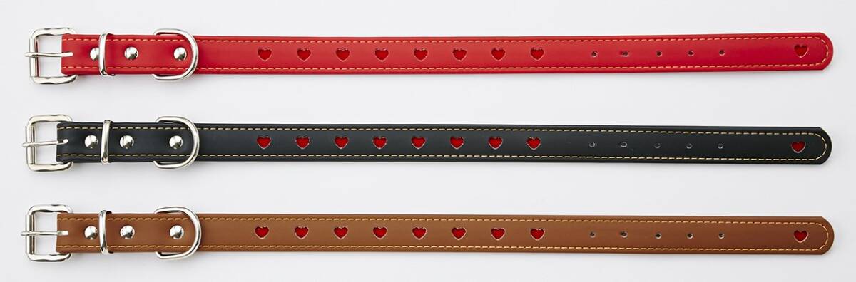 商品紹介 特に短毛種のワンちゃんにおすすめしたい、フラットタイプの首輪です。ハートマークがとってもキュート。 使用上の注意 ~●犬以外には使用しないでください。●事故防止のため、適応サイズ・適応体重以外の犬には使用しないでください。ただし、犬の習性を十分理解したうえで、強く引く場合は適応体重に余裕のある製品を購入してください。●引ひも・胴輪は散歩用として使用してください。一定の場所にとどめておくためのケイ留には使用しないでください。犬が製品をかみ切り、事故につながる恐れがあります。●犬をケイ留する場合は、必ず鎖等のケイ留用品を使用してください。●首輪・胴輪は指が2~~3本入る程度に装着し、しまり過ぎていないか、たえず点検してください。●犬が嫌がる場合は、無理に使用しないでください。●子供が使用する場合は、必ず大人が立ち会ってください。●本品は消耗品ですので、使用前には必ず点検し、前後を目安としてホツレ・毛羽立ち・亀裂等の傷みが目立ち始めたら新しい製品に買い替えてください。●製品によっては水ぬれ等で色落ちすることがあります。ぬれた場合はタオル等でふき、陰干ししてください。暖房器具等で乾燥させないでください。●火気や水気のそばでの使用や保管はしないでください。●幼児・子供・ペットのふれない所に保管してください。~ 原材料・成分 合成皮革 使用方法 ※適応犬種は標準体型をもとに表示しておりますが、購入の際には必ずワンちゃんを実測のうえ、適応サイズを確かめてお選びください。指が23本入る程度に装着し、しまり過ぎていないか、たえず点検してください。 ●火気や水気のそば・直射日光・高温多湿の場所をさけて保管してください。●幼児・子供・ペットのふれない所に保管してください。