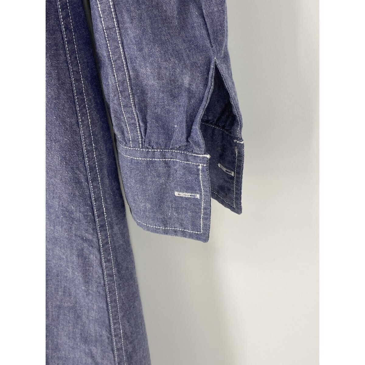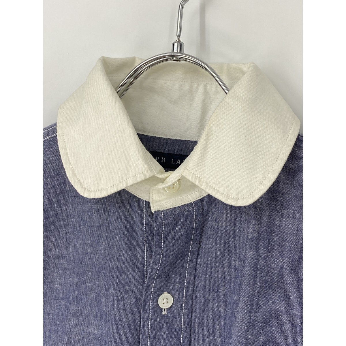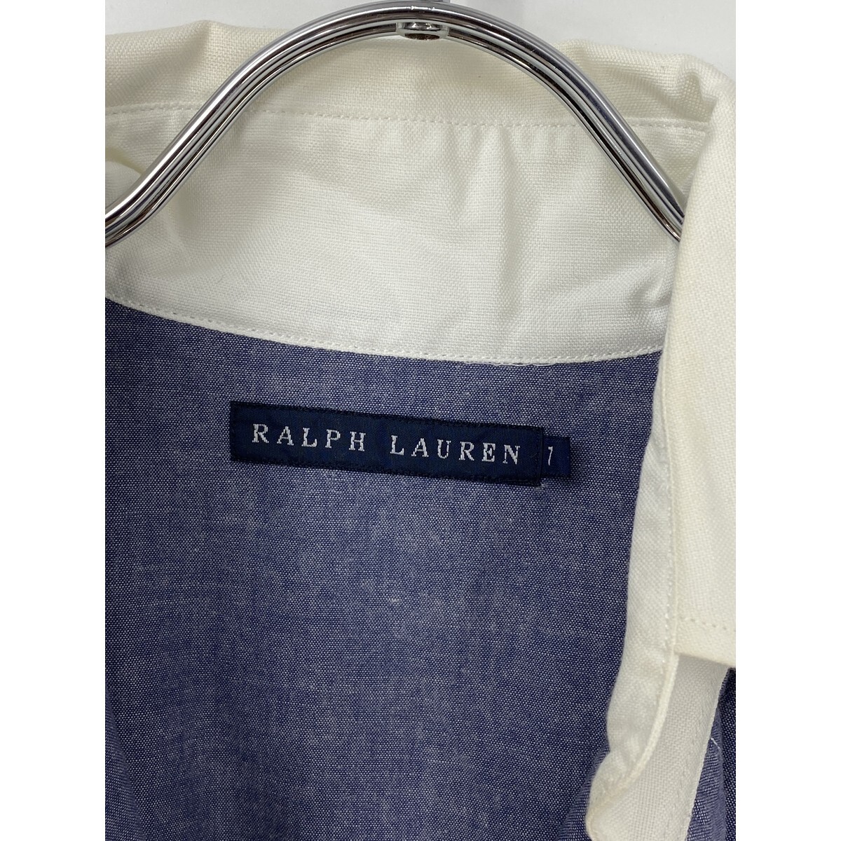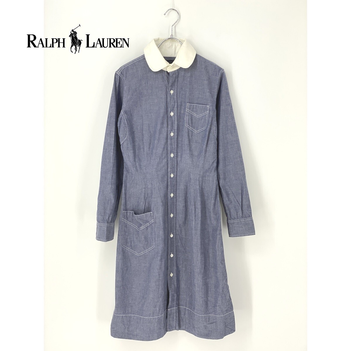 A7746/美品 春夏 RALPH LAUREN ラルフローレン コットン ラウンドカラー 長袖 シャツ ロング ミモレ丈 ワンピース 7 S程 青/レディース