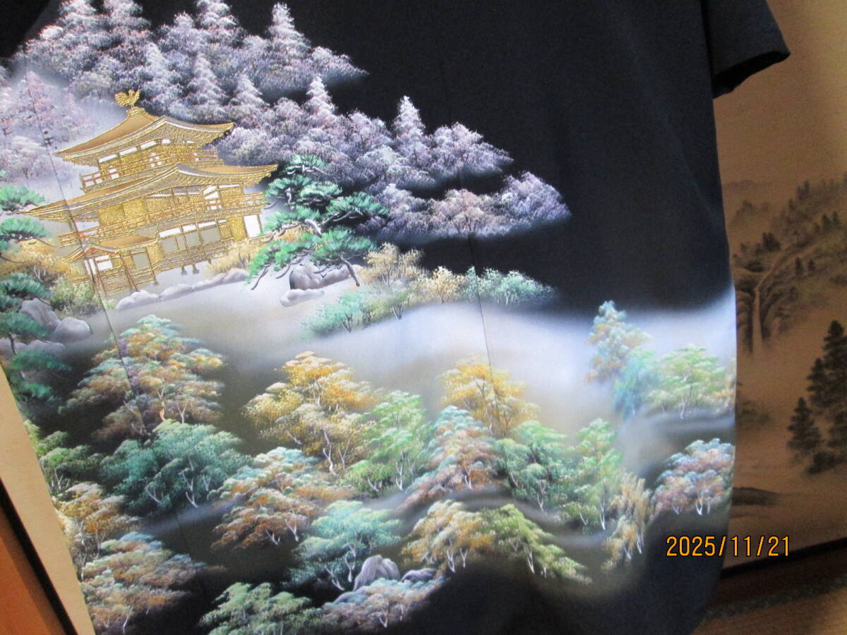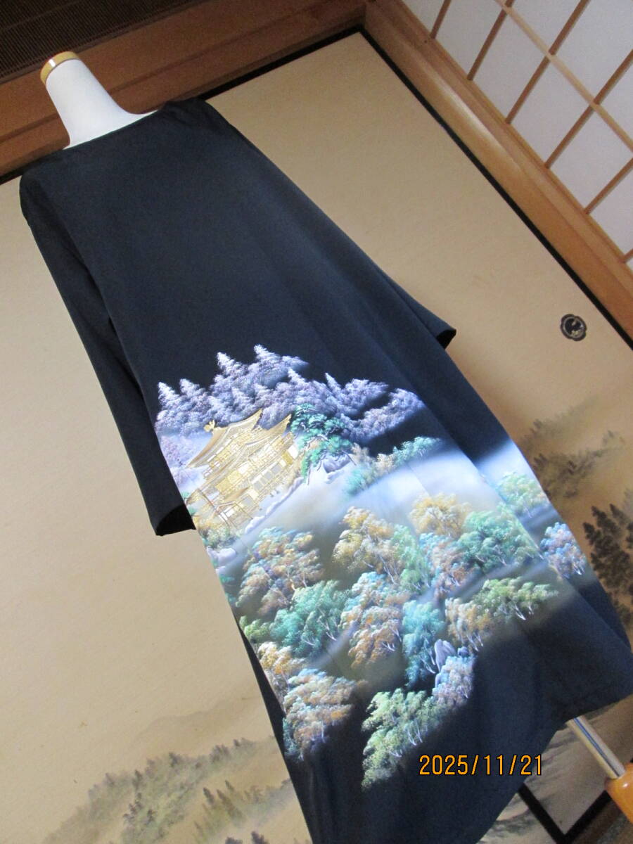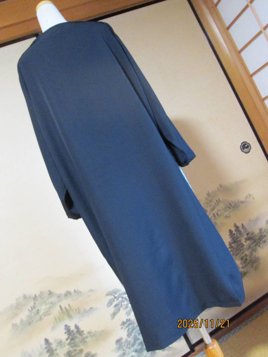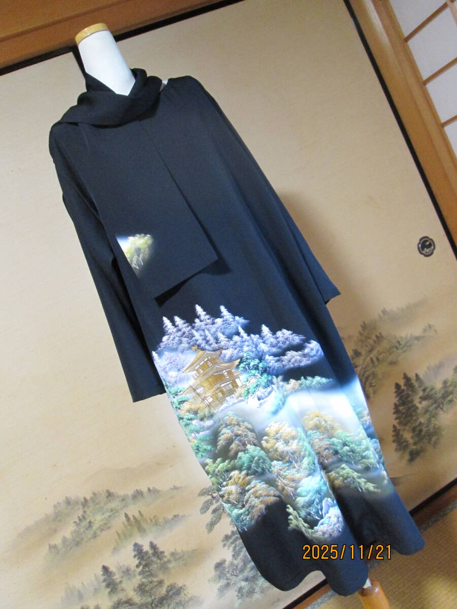 新品未仕立ての正絹黒留袖からワンピース&細共布ベルト2点セットにリメイクしました。