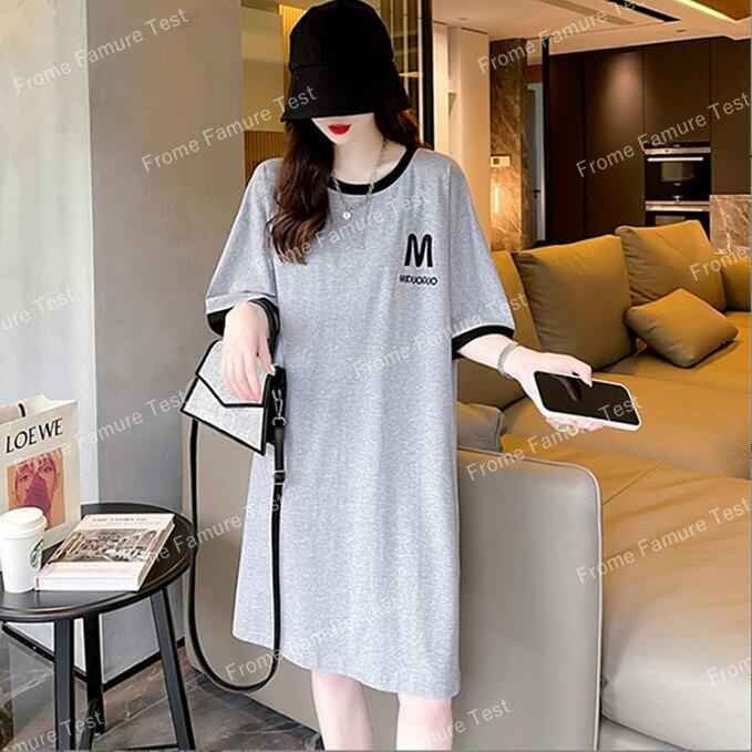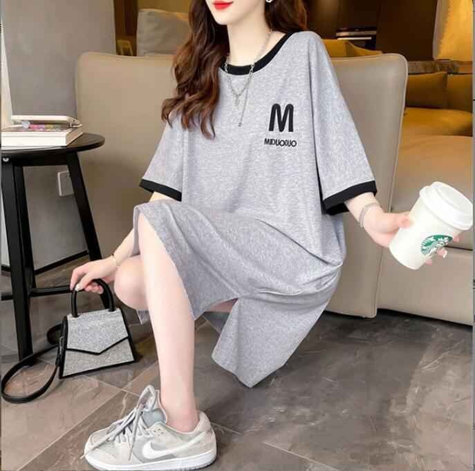 半袖ワンピース ひざ丈 ゆったり感 韓国ファッション レディース L グレー